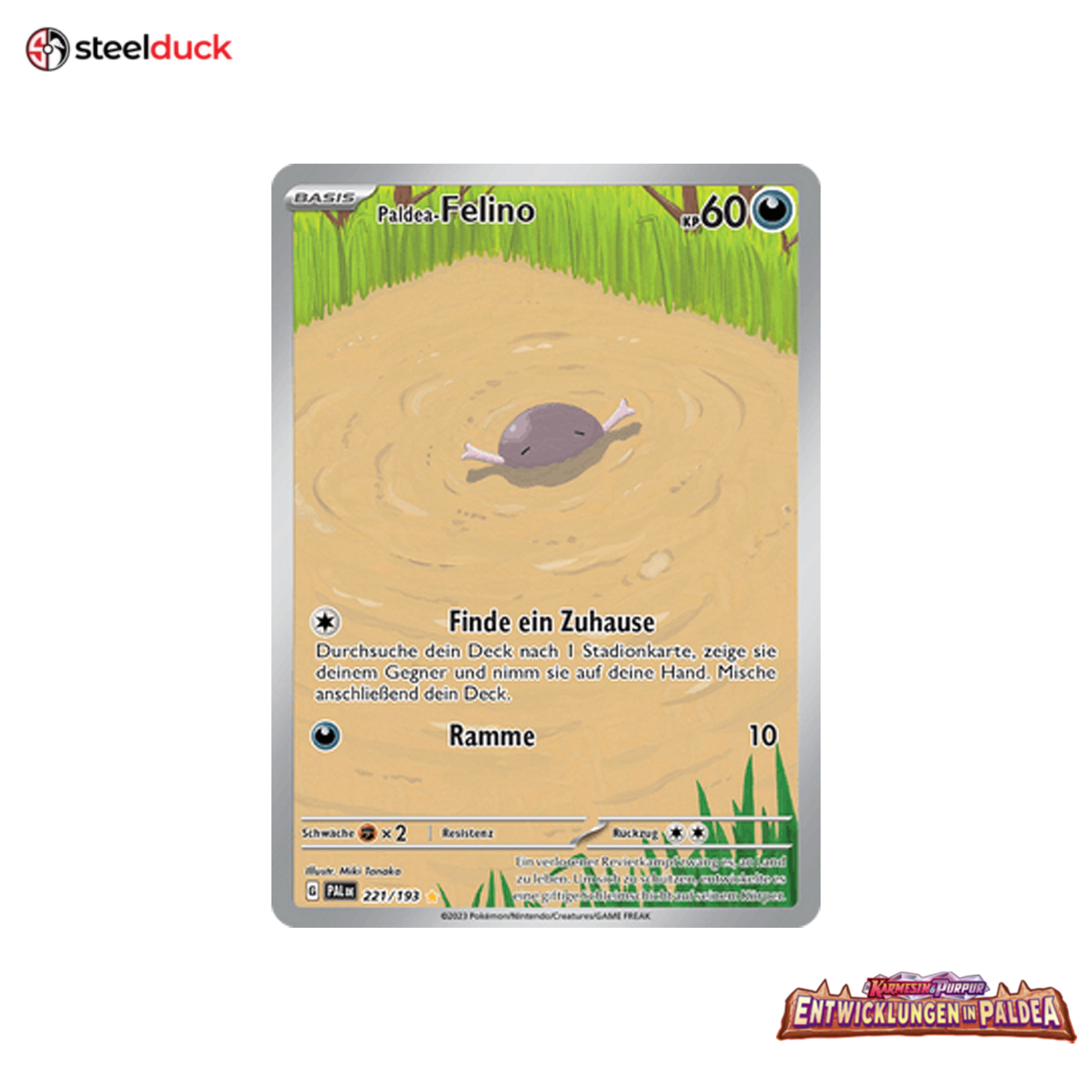 Die Karte Paldea-Felino stammt aus dem beliebten Pokémon-Set Entwicklungen in Paldea und ist ein echtes Highlight für jede Sammlung.