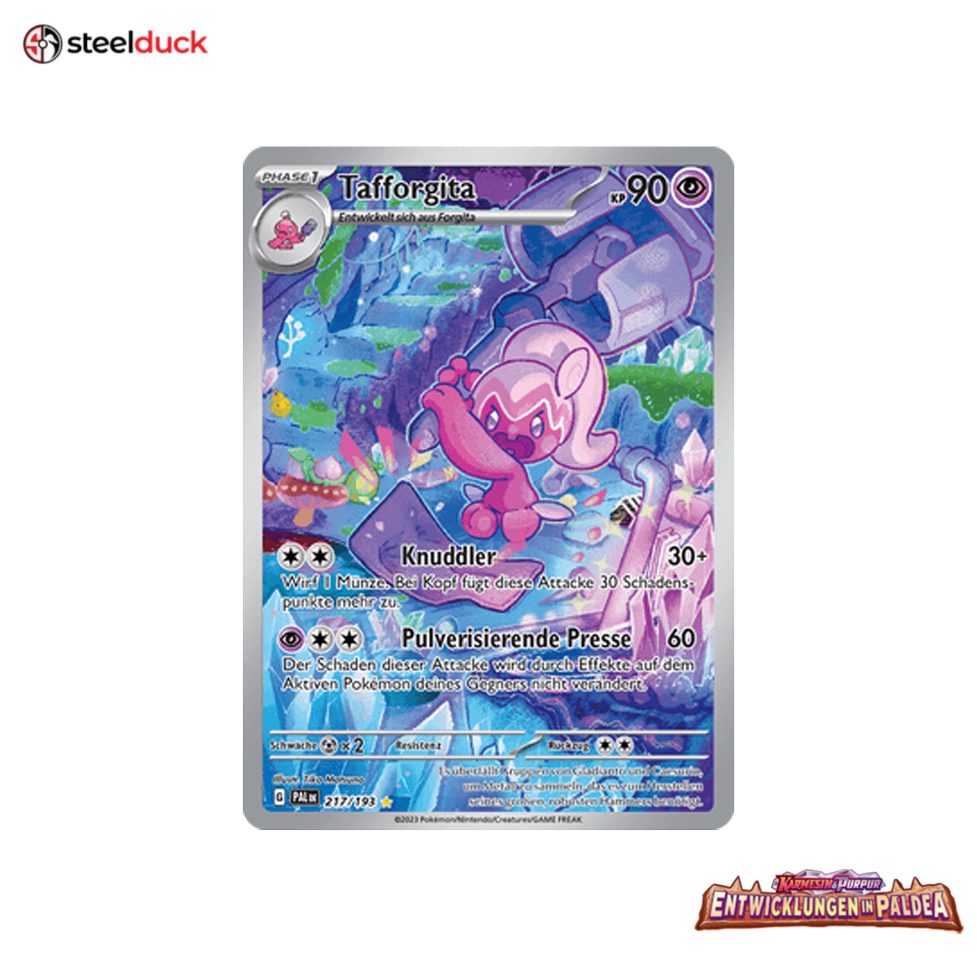 Die Karte Tafforgita stammt aus dem beliebten Pokémon-Set Entwicklungen in Paldea und ist ein echtes Highlight für jede Sammlung.