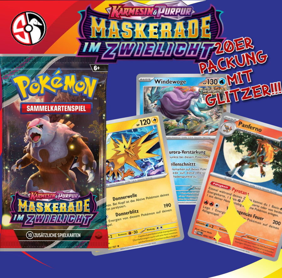 Entdecke unsere exklusiven, handverlesenen Booster-Packs mit ausgewählten Karten aus dem mystischen Set "Maskerade im Zwielicht"! Jedes Pack ist ein Unikat und bietet dir ein besonderes Sammelerlebnis. 🃏✨