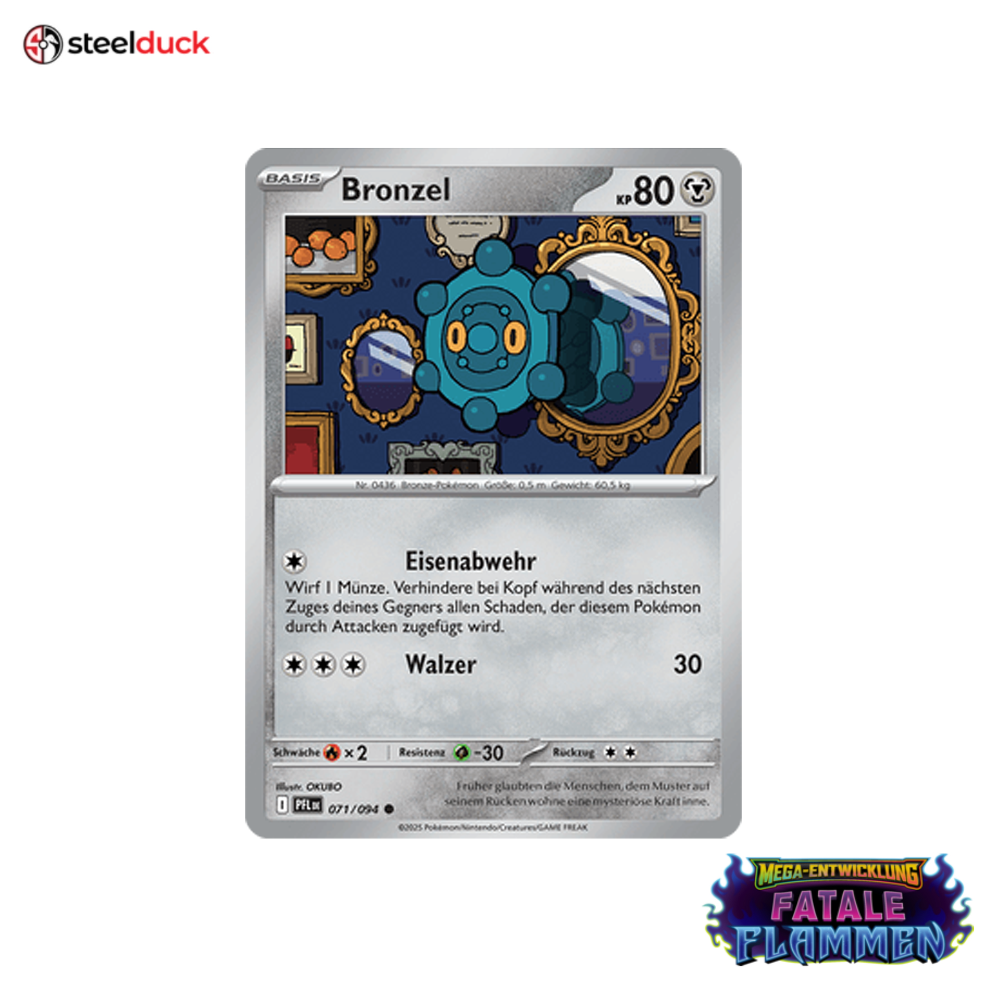 Die Karte Bronzel stammt aus dem beliebten Pokémon-Set Fatale Flammen und ist ein echtes Highlight für jede Sammlung.