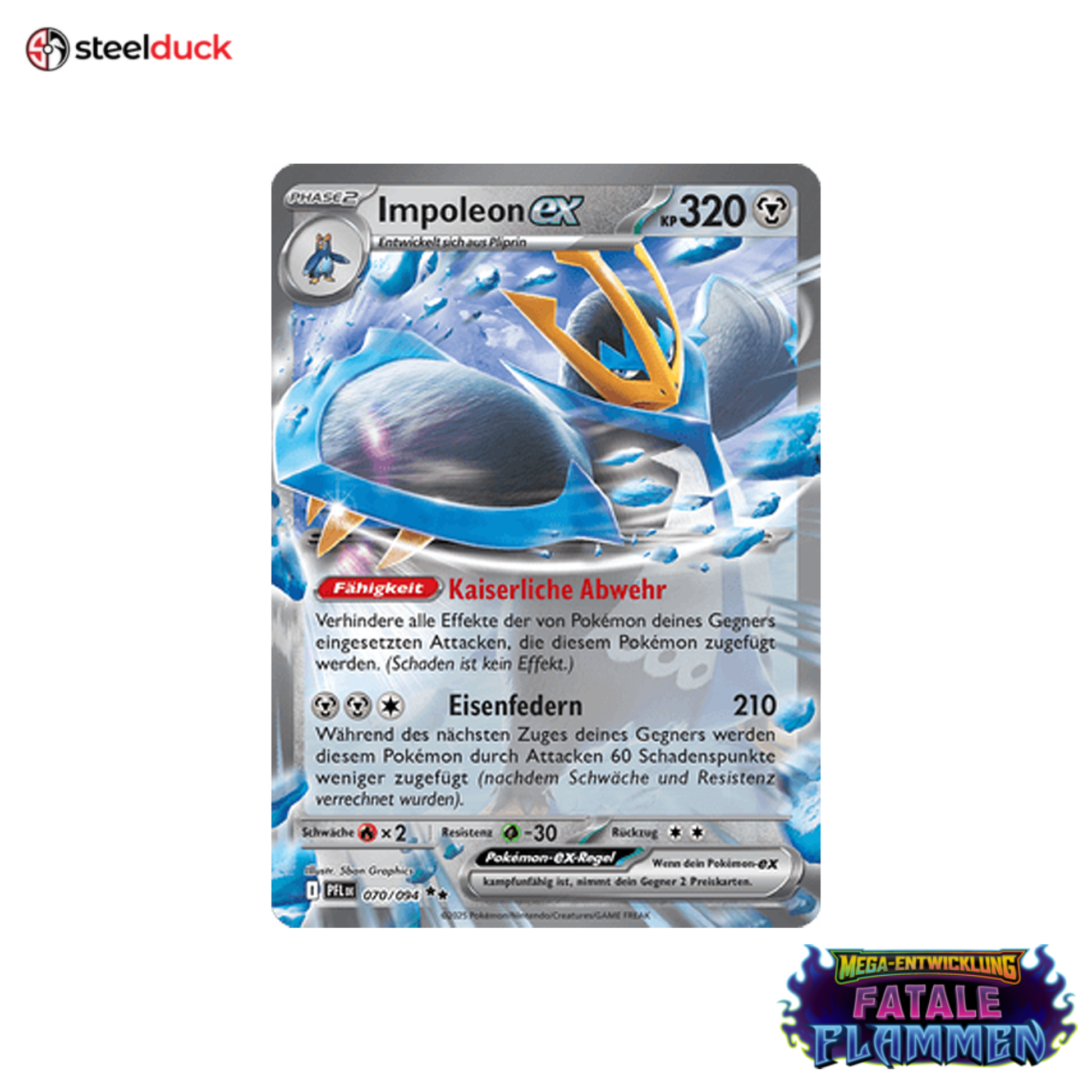 Die Karte Impoleon ex stammt aus dem beliebten Pokémon-Set Fatale Flammen und ist ein echtes Highlight für jede Sammlung.