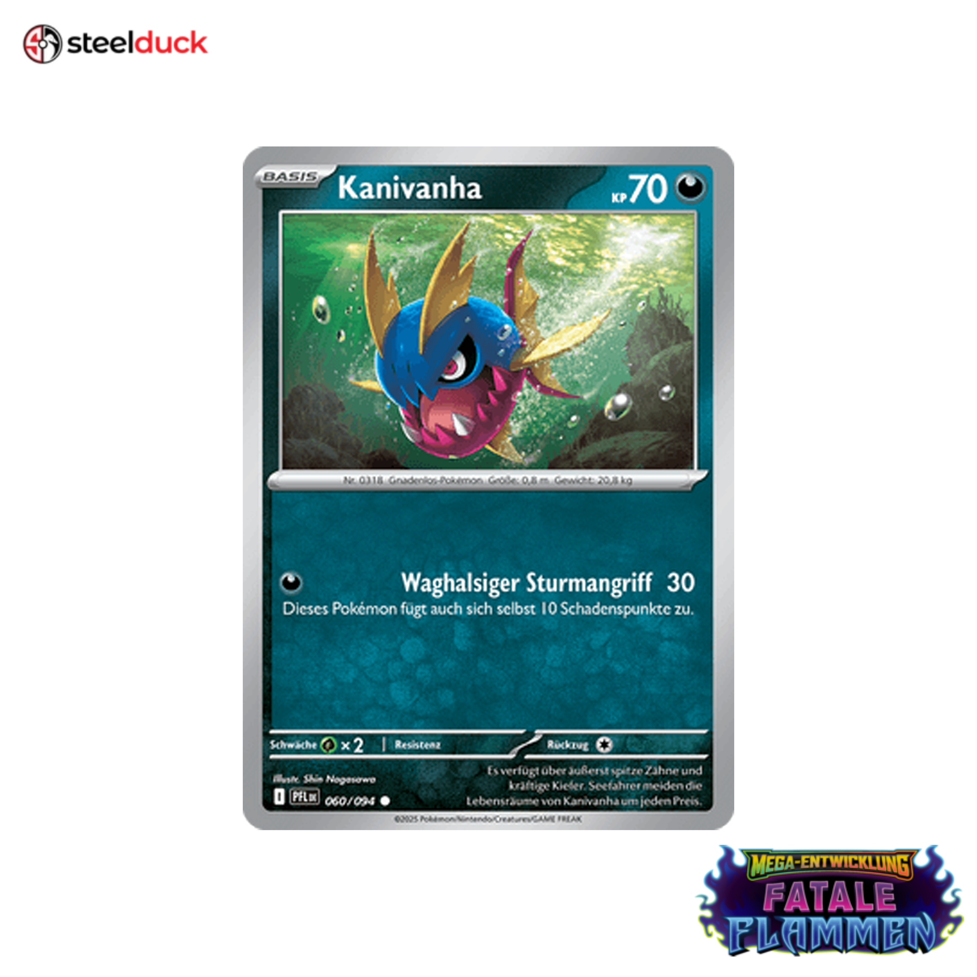 Die Karte Kanivanha stammt aus dem beliebten Pokémon-Set Fatale Flammen und ist ein echtes Highlight für jede Sammlung.