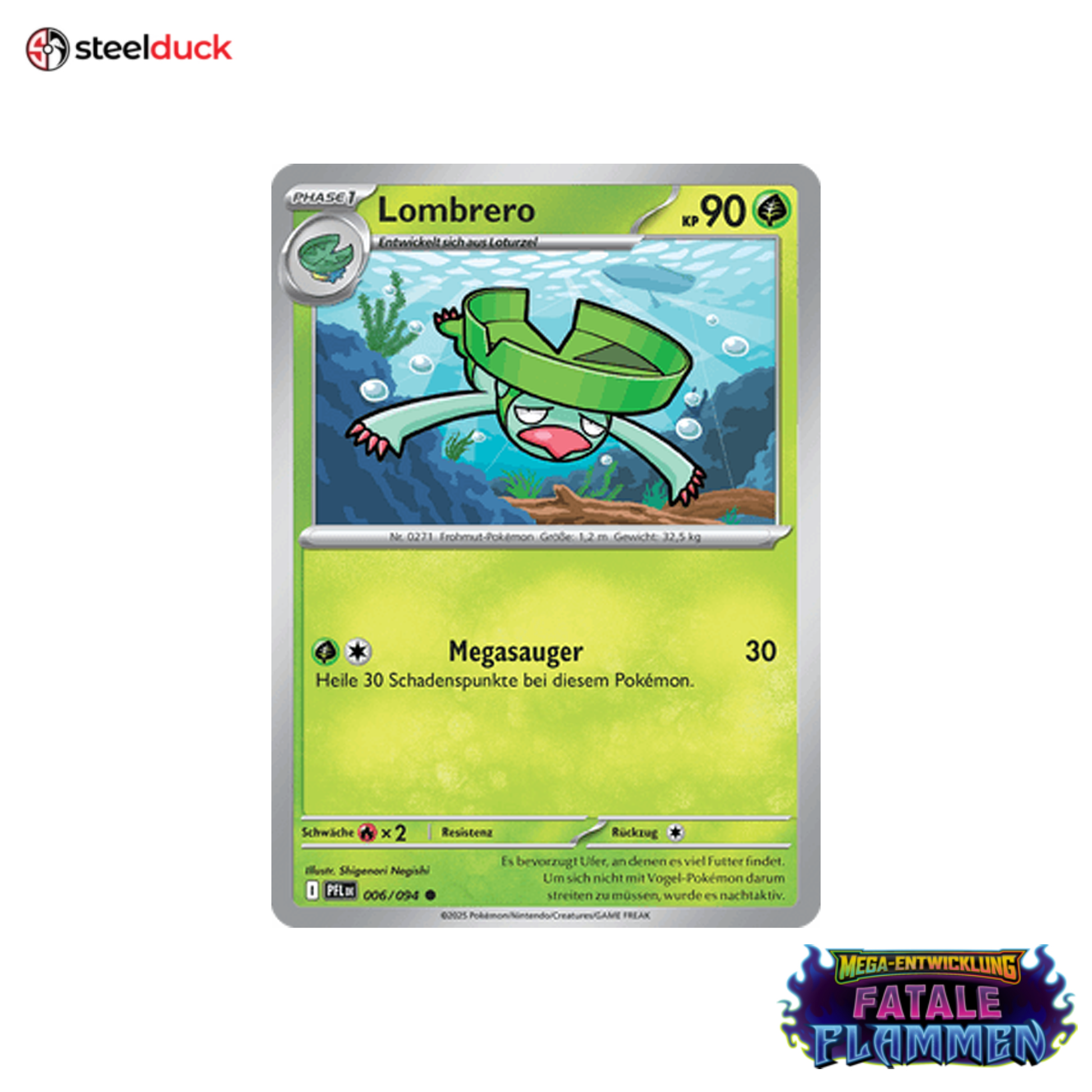 Die Karte Lombrero stammt aus dem beliebten Pokémon-Set Fatale Flammen und ist ein echtes Highlight für jede Sammlung.