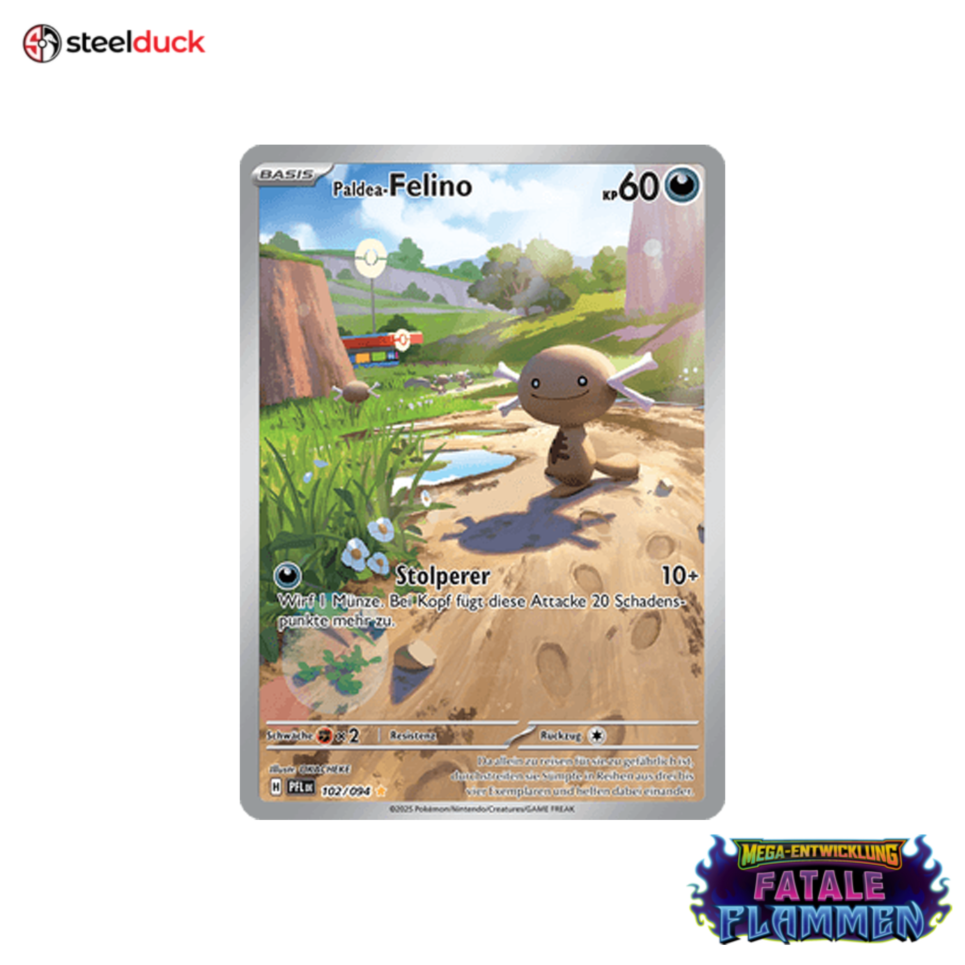 Die Karte Paldea-Felino stammt aus dem beliebten Pokémon-Set Fatale Flammen und ist ein echtes Highlight für jede Sammlung.
