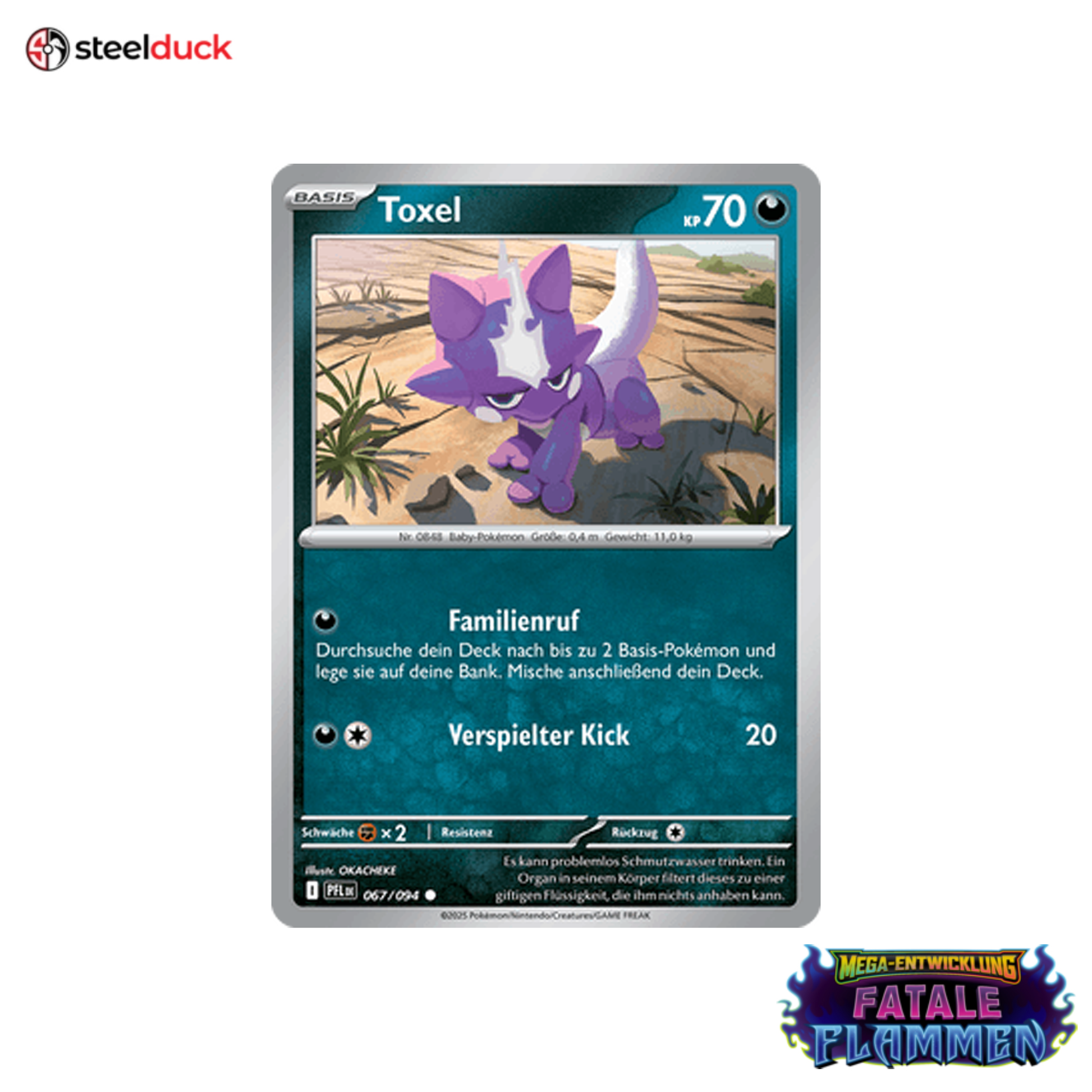 Die Karte Toxel stammt aus dem beliebten Pokémon-Set Fatale Flammen und ist ein echtes Highlight für jede Sammlung.