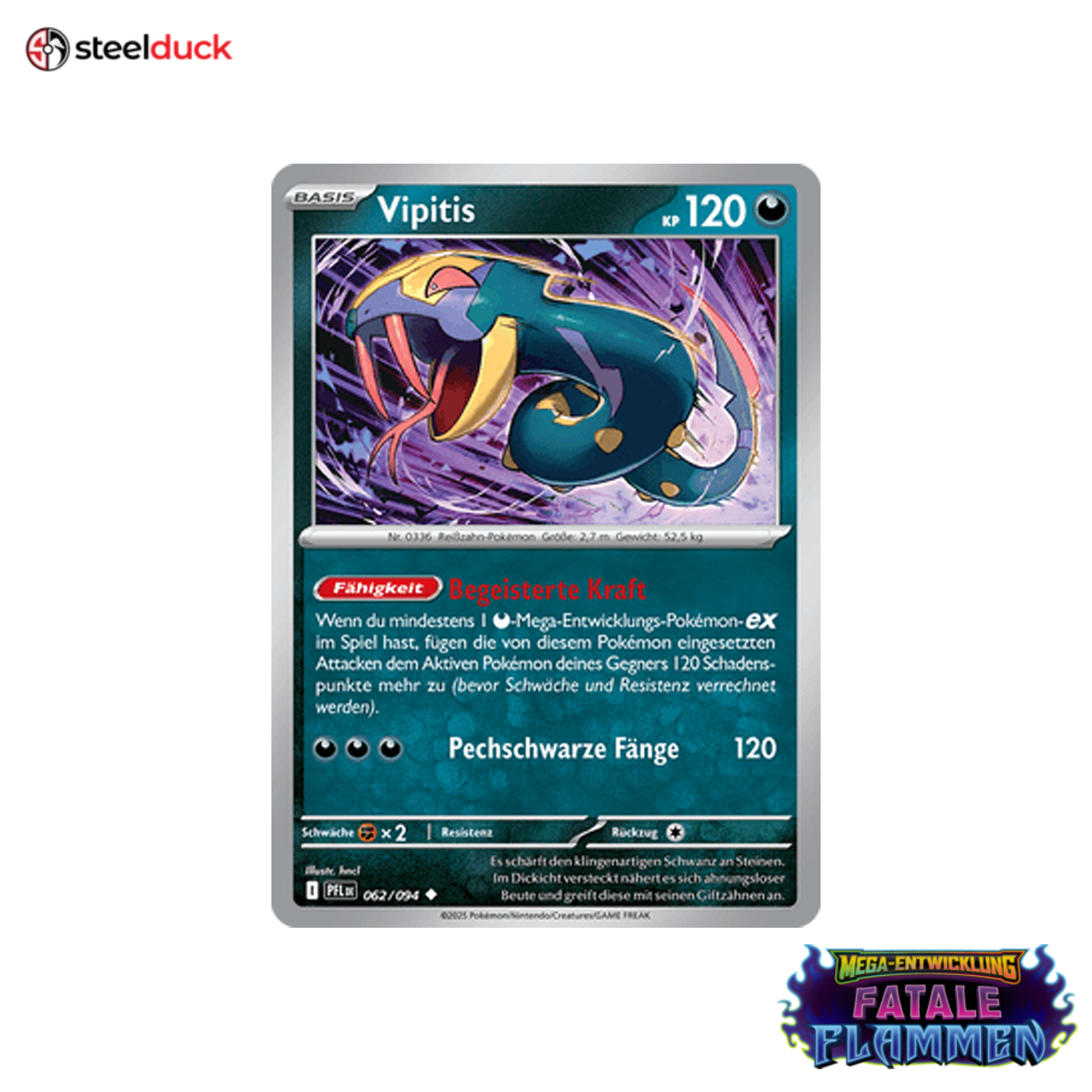 Die Karte Vipitis stammt aus dem beliebten Pokémon-Set Fatale Flammen und ist ein echtes Highlight für jede Sammlung.