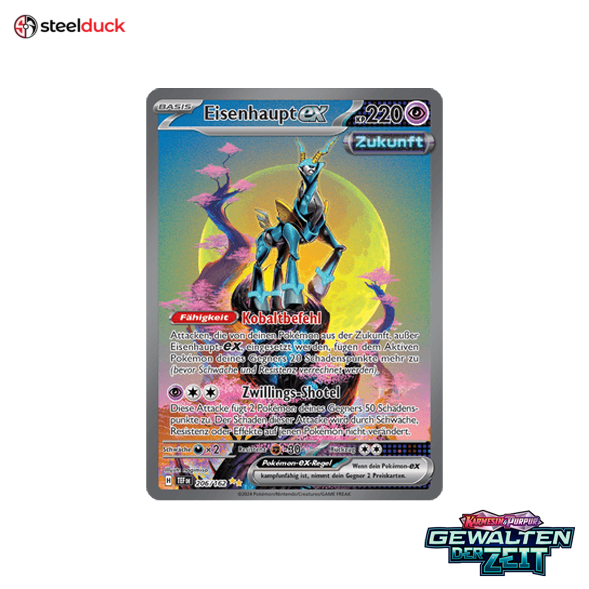 Die Karte Eisenhaupt ex stammt aus dem beliebten Pokémon-Set Gewalten der Zeit und ist ein echtes Highlight für jede Sammlung.