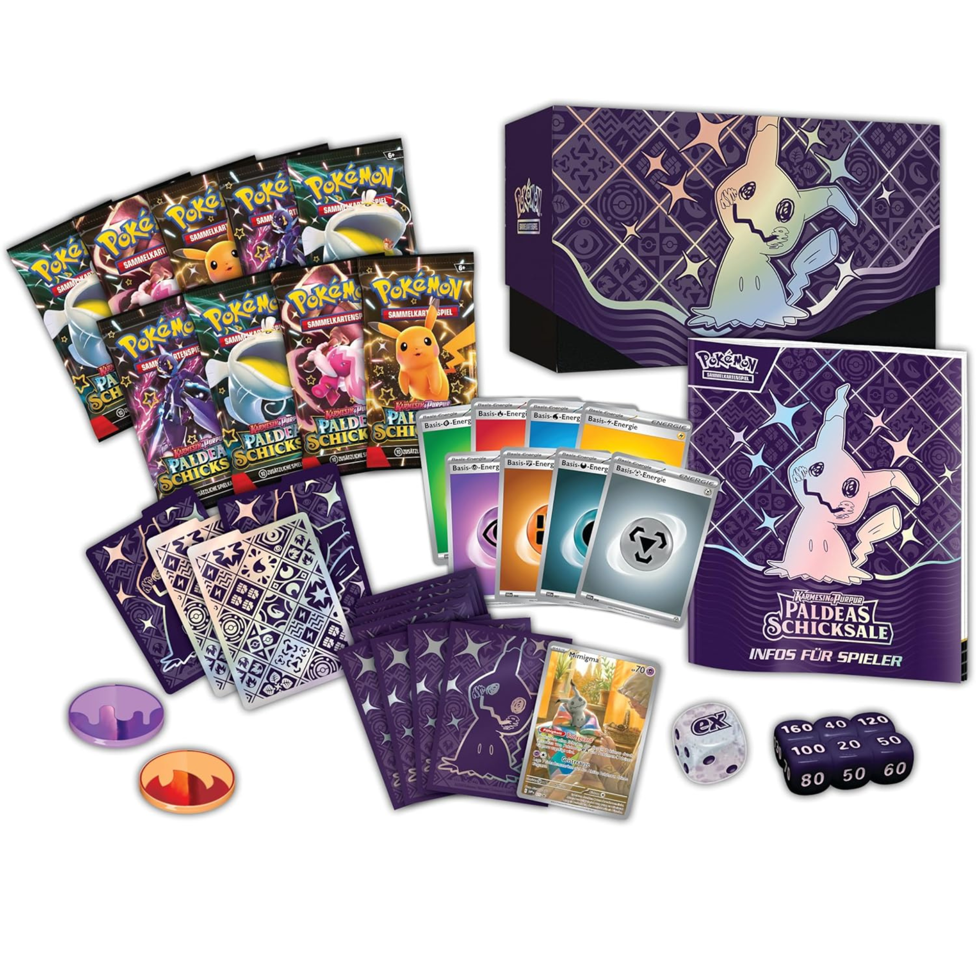 - 9 Boosterpacks Karmesin & Purpur – Paldeas Schicksale (je 10 Karten + 1 Basis-Energiekarte).