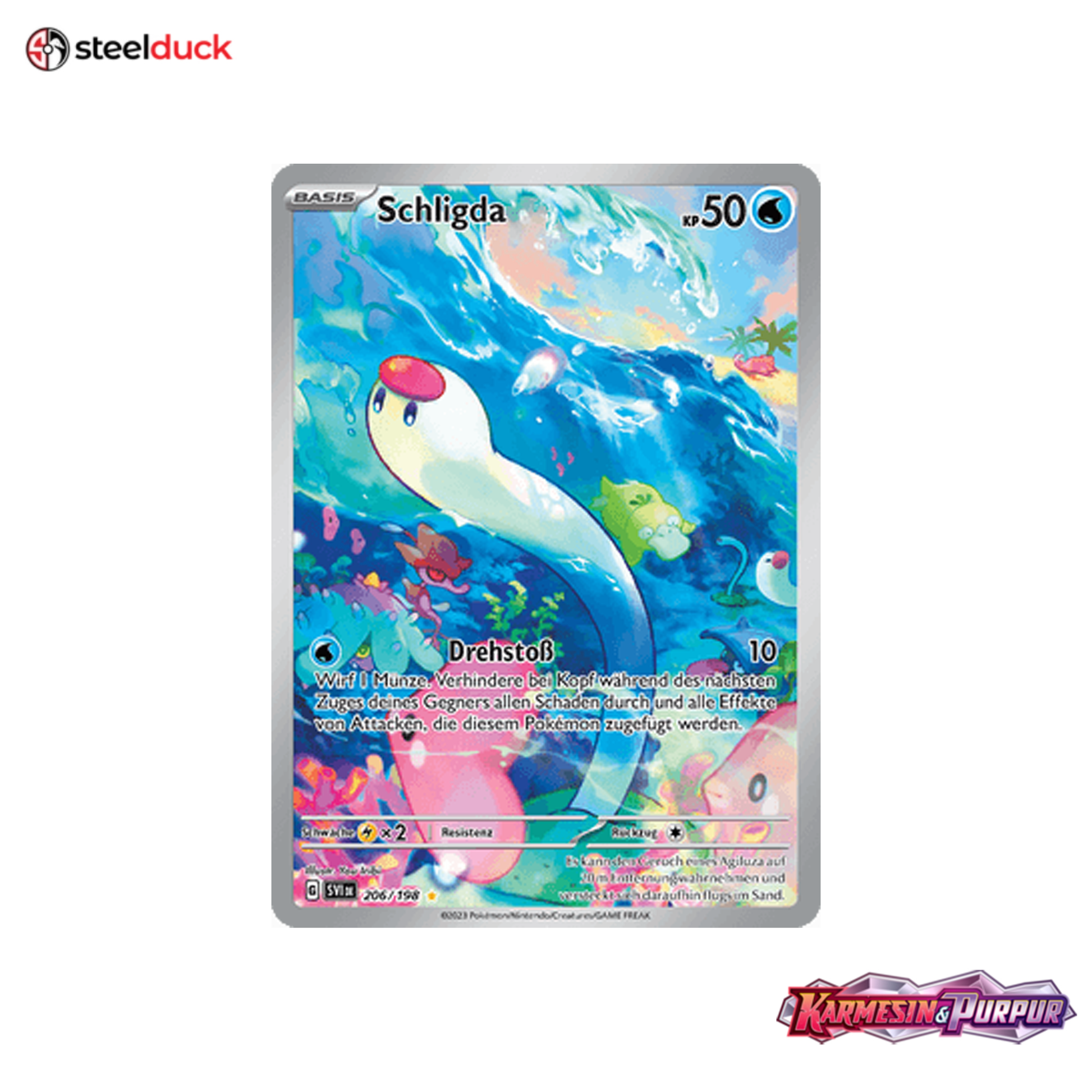 Die Karte Schligda stammt aus dem beliebten Pokémon-Set Karmesin & Purpur und ist ein echtes Highlight für jede Sammlung.