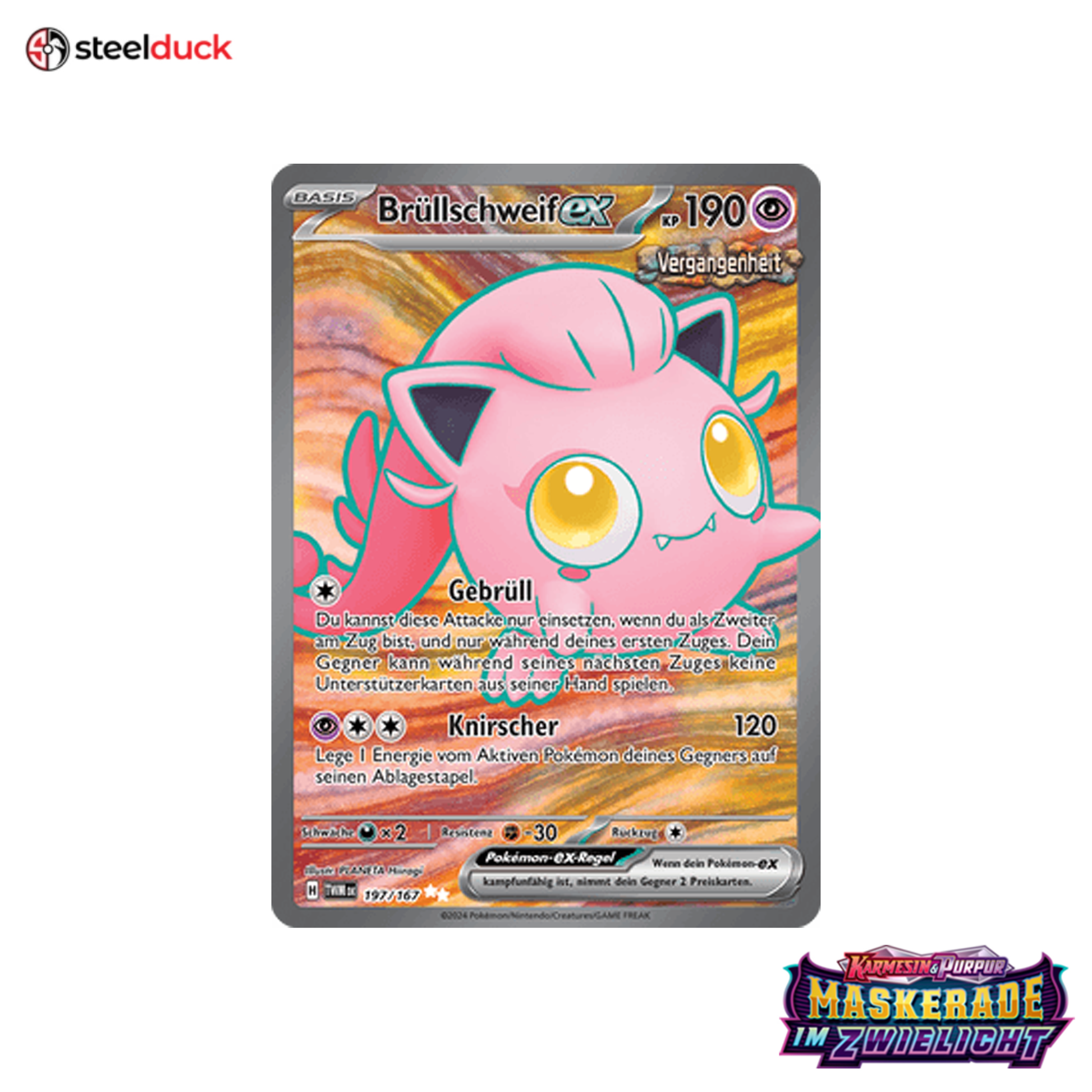Die Karte Brüllschweif ex stammt aus dem beliebten Pokémon-Set Maskerade im Zwielicht und ist ein echtes Highlight für jede Sammlung.