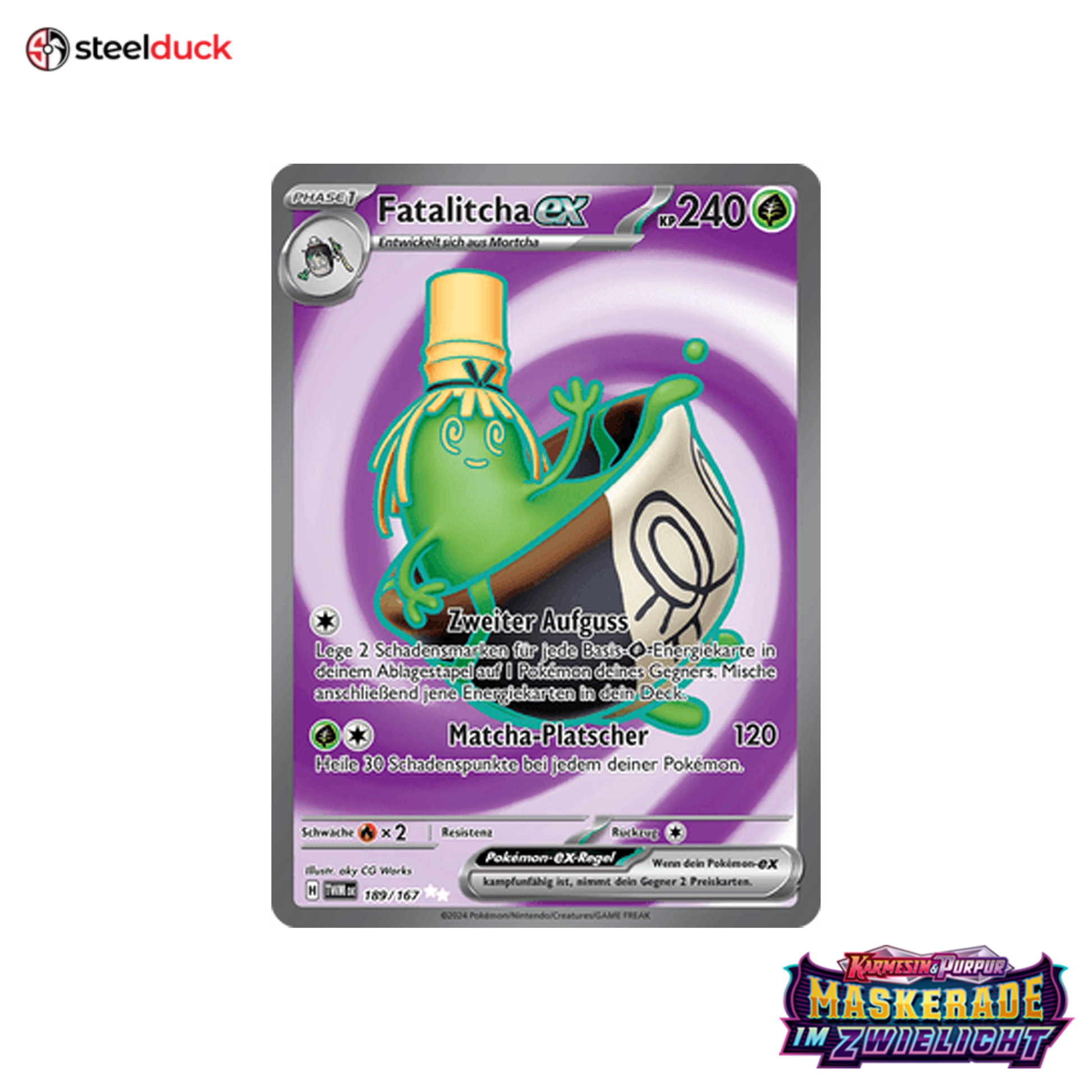 Die Karte Fatalitcha ex stammt aus dem beliebten Pokémon-Set Maskerade im Zwielicht und ist ein echtes Highlight für jede Sammlung.