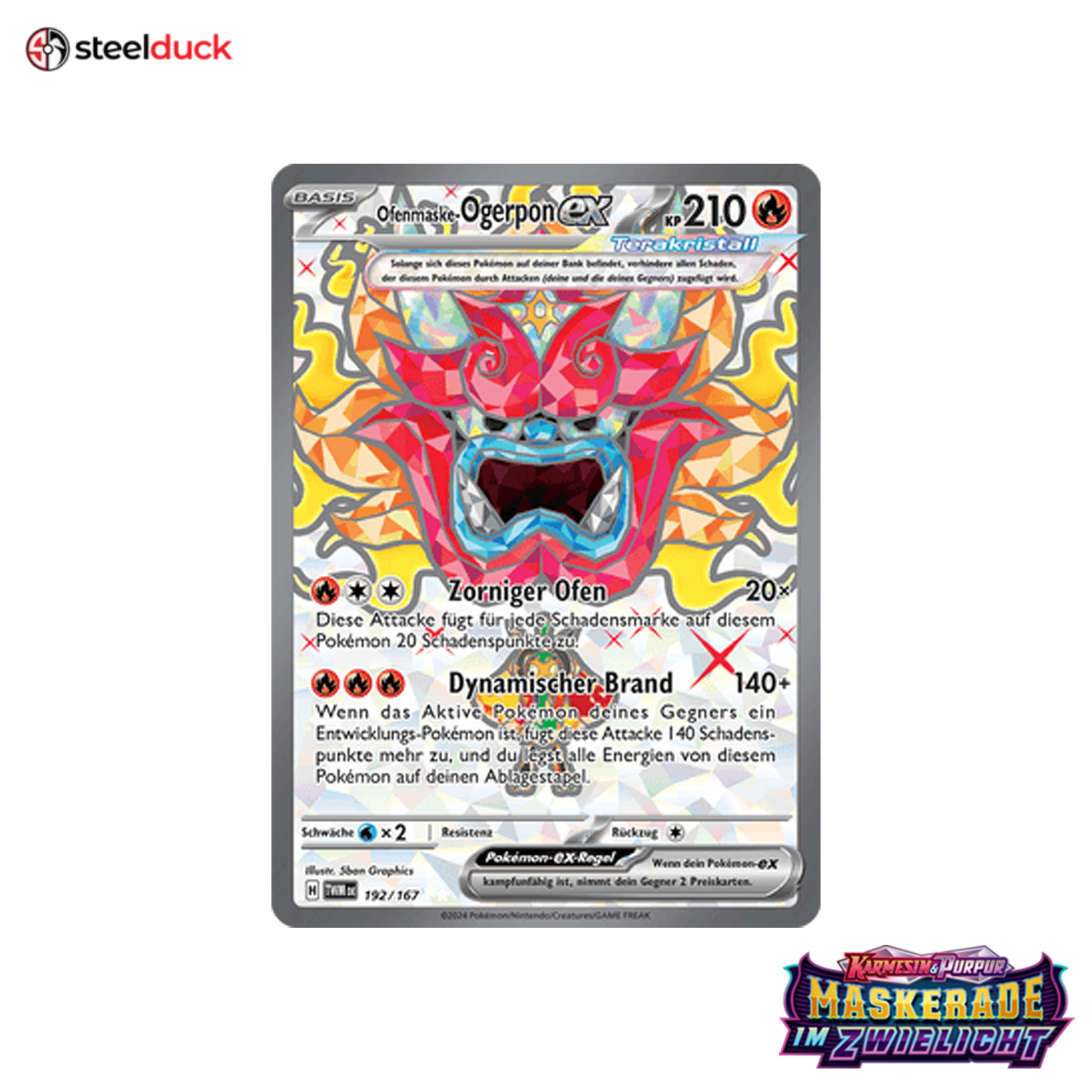Die Karte Ofenmaske-Ogerpon ex stammt aus dem beliebten Pokémon-Set Maskerade im Zwielicht und ist ein echtes Highlight für jede Sammlung.