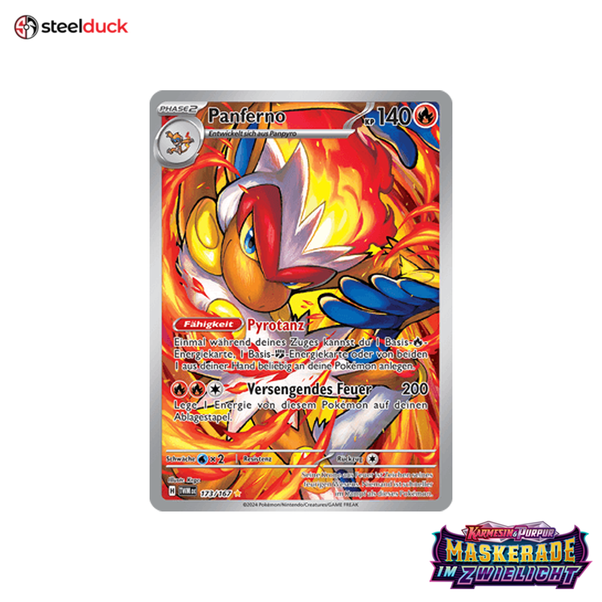 Die Karte Panferno stammt aus dem beliebten Pokémon-Set Maskerade im Zwielicht und ist ein echtes Highlight für jede Sammlung.