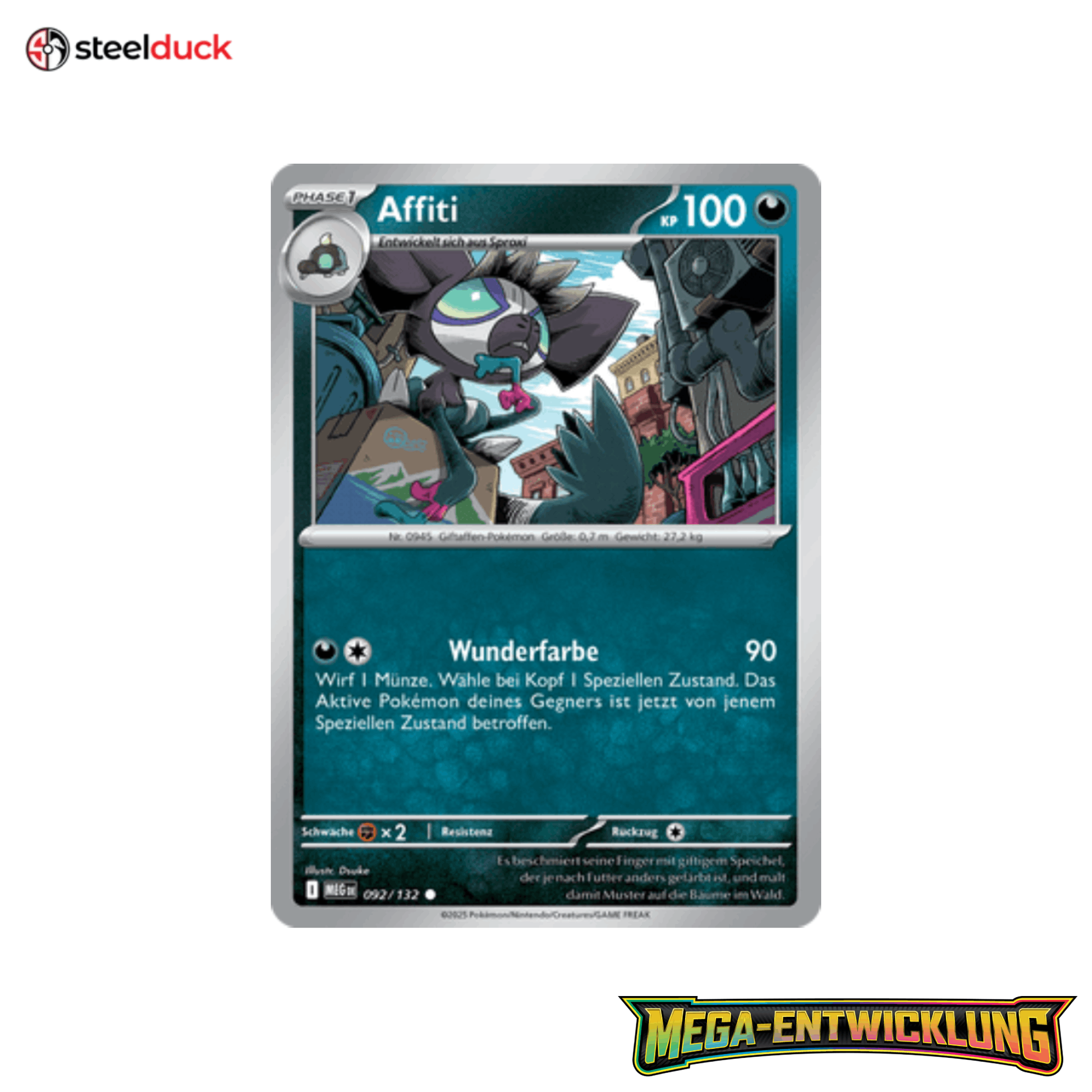 Die Karte Affiti stammt aus dem beliebten Pokémon-Set Mega-Entwicklung und ist ein echtes Highlight für jede Sammlung.