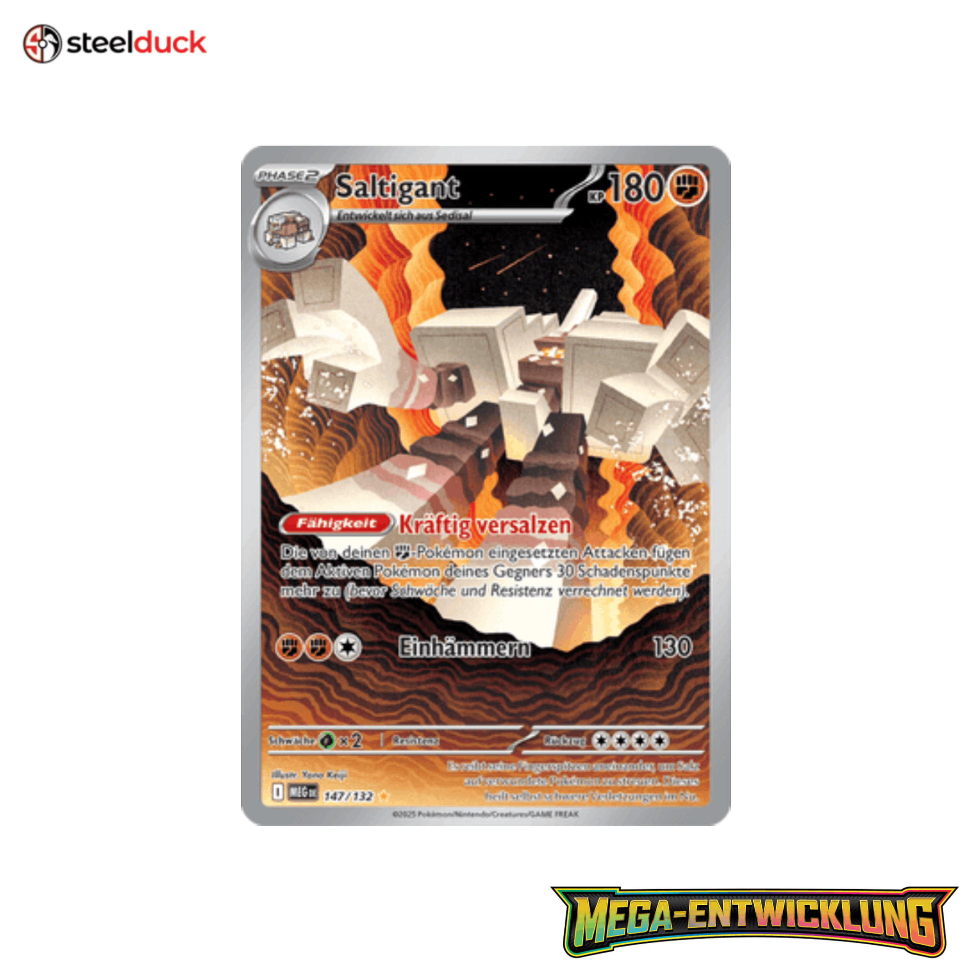Die Karte Saltigant stammt aus dem beliebten Pokémon-Set Mega-Entwicklung und ist ein echtes Highlight für jede Sammlung.
