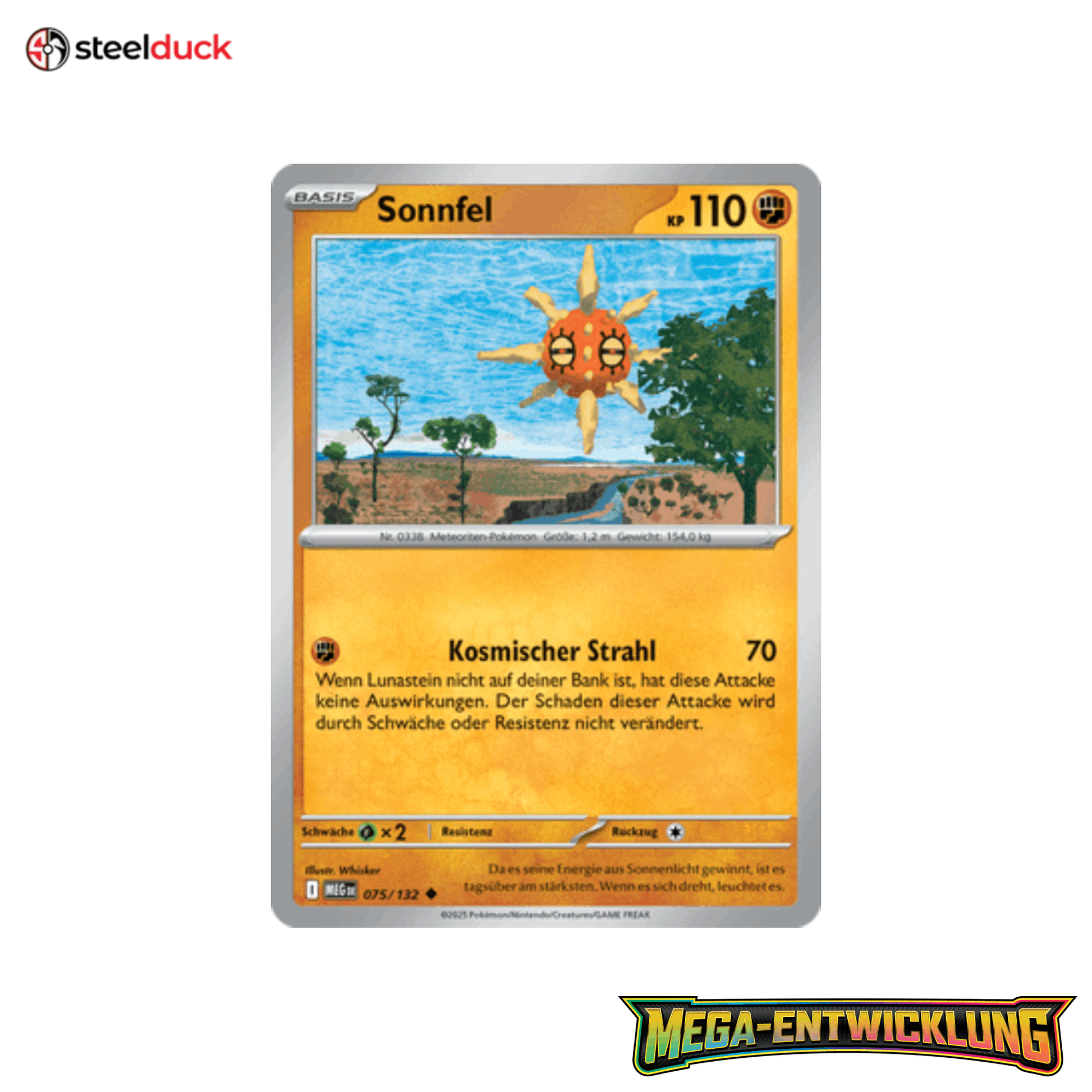 Die Karte Sonnfel stammt aus dem beliebten Pokémon-Set Mega-Entwicklung und ist ein echtes Highlight für jede Sammlung.