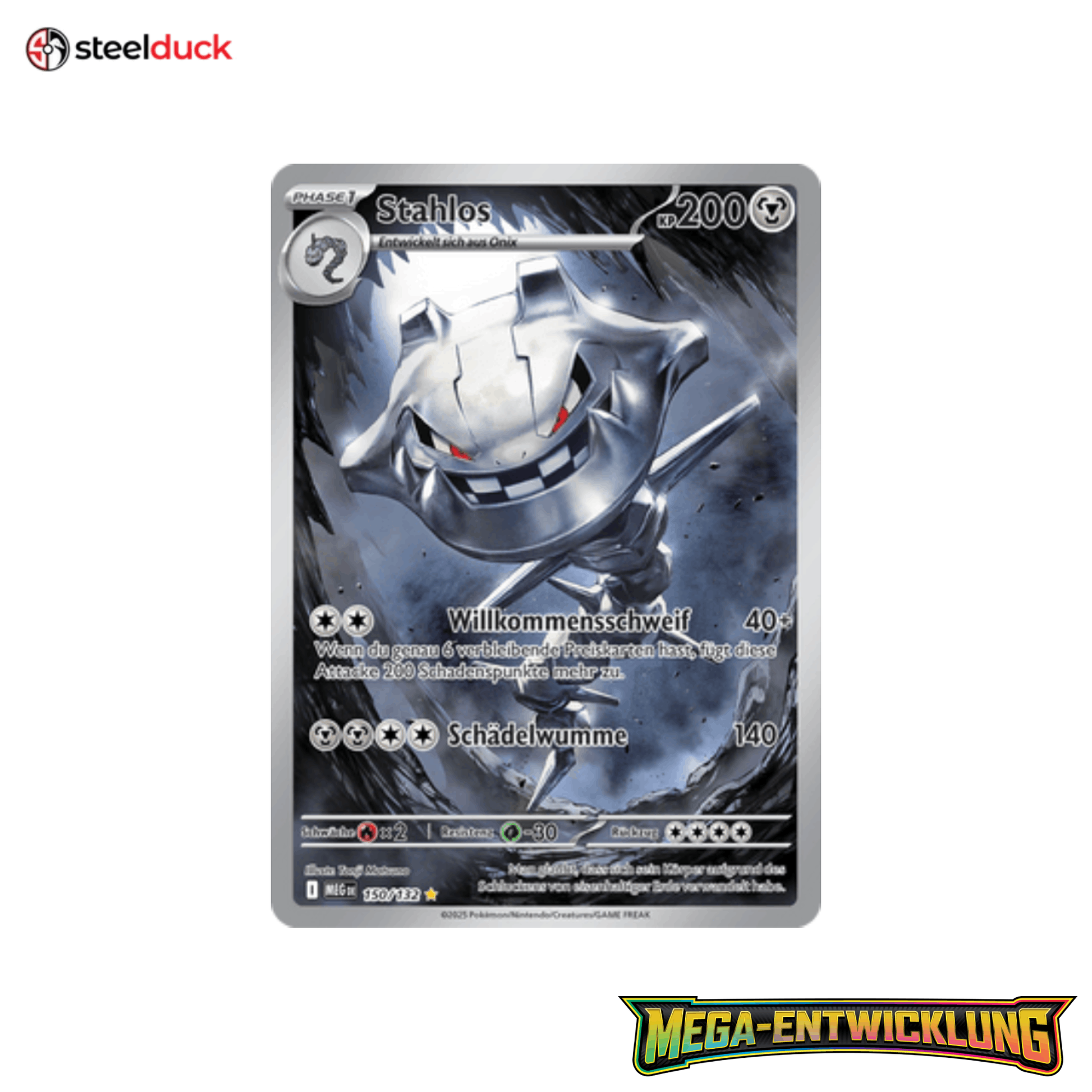 Die Karte Stahlos stammt aus dem beliebten Pokémon-Set Mega-Entwicklung und ist ein echtes Highlight für jede Sammlung.
