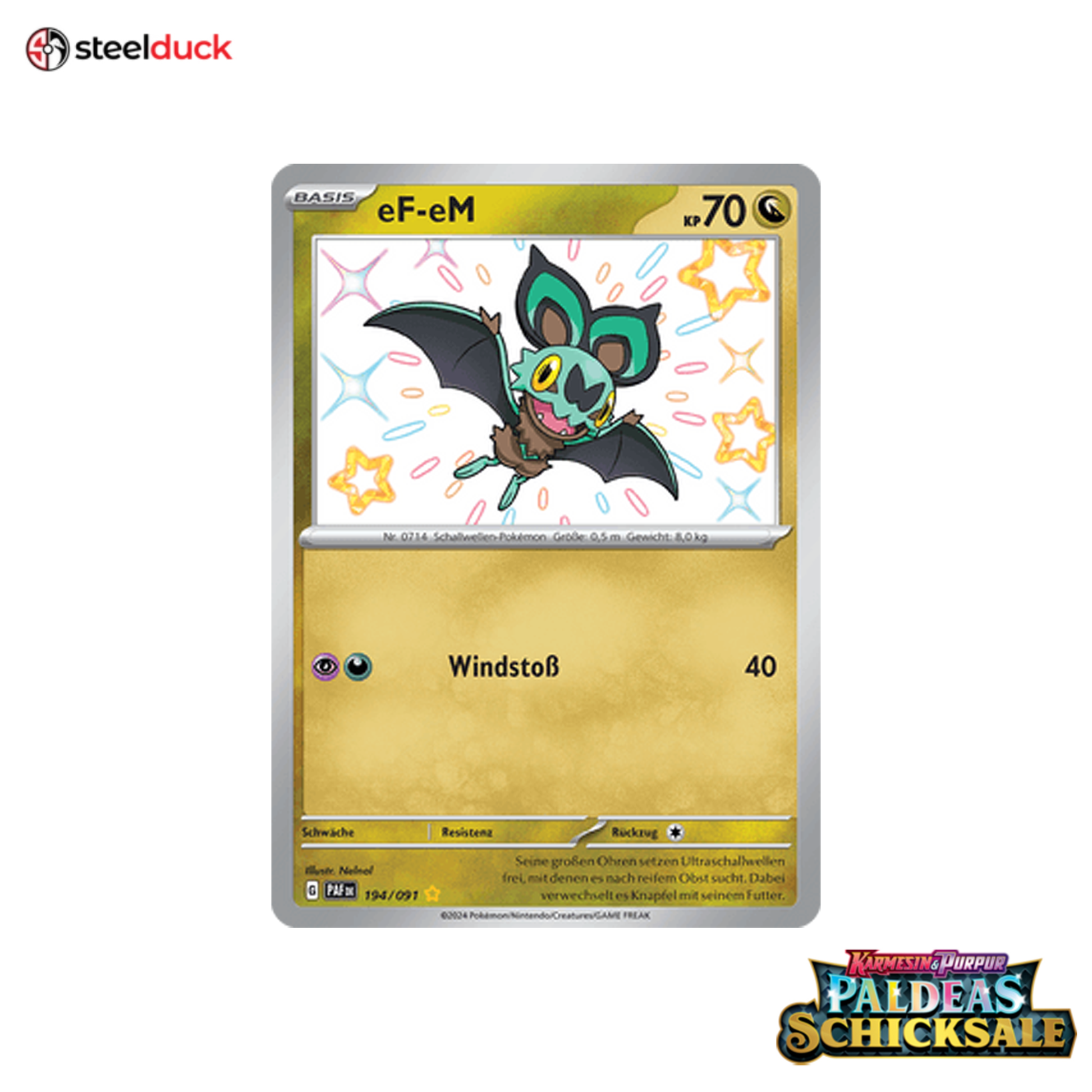 Die Karte eF-eM stammt aus dem beliebten Pokémon-Set Paldeas Schicksale und ist ein echtes Highlight für jede Sammlung.