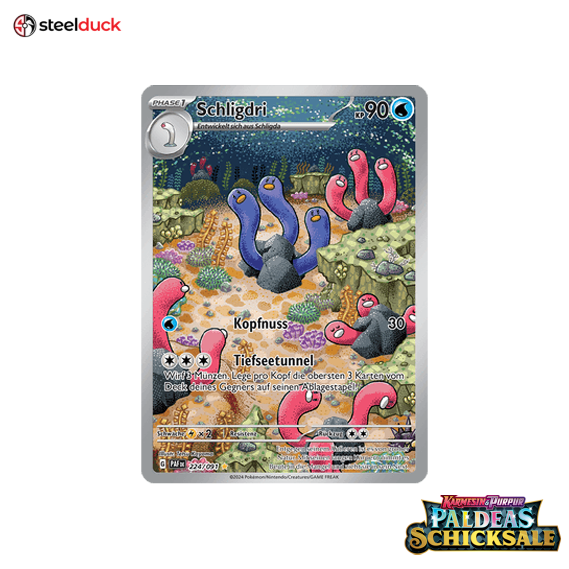 Die Karte Schligdri stammt aus dem beliebten Pokémon-Set Paldeas Schicksale und ist ein echtes Highlight für jede Sammlung.