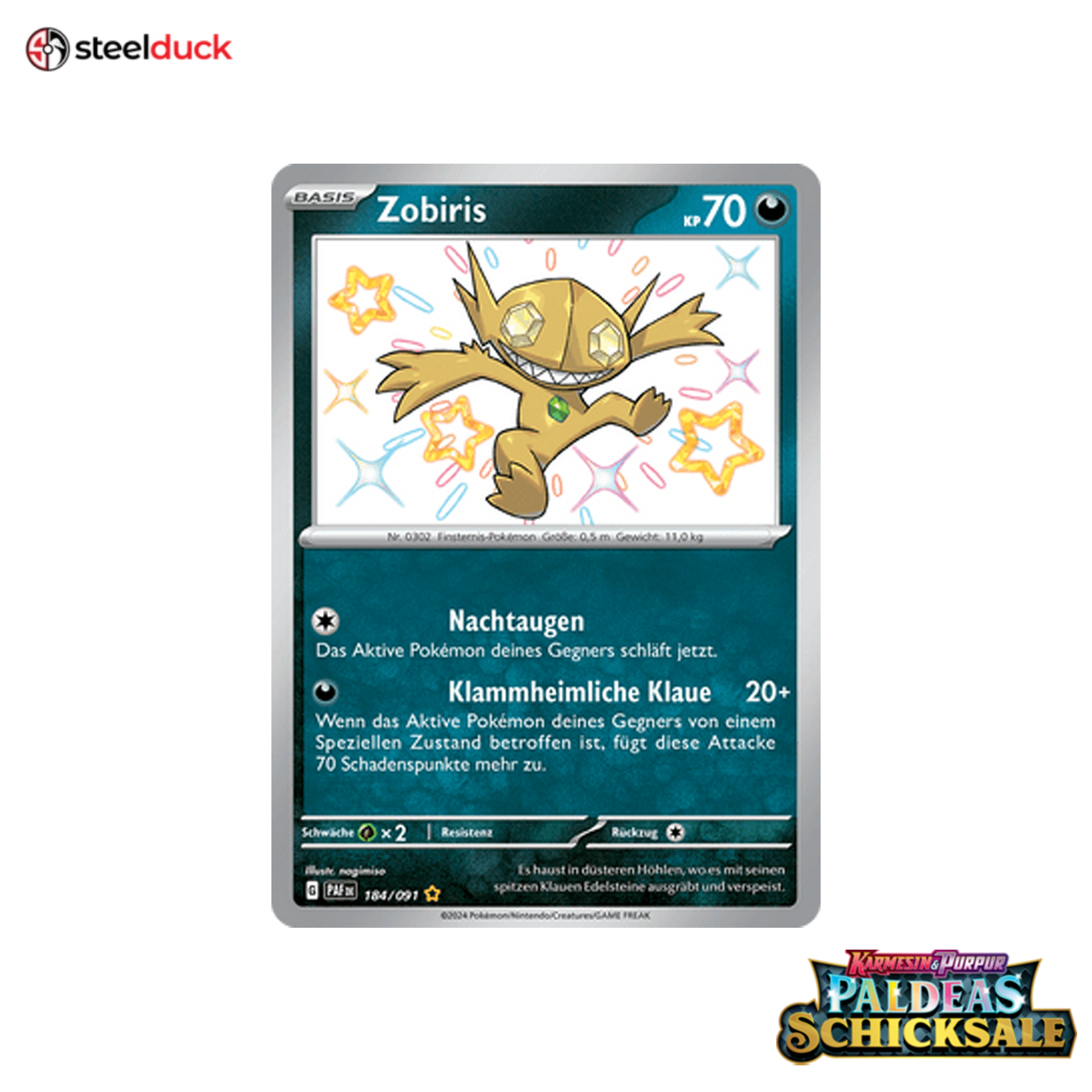 Die Karte Zobiris stammt aus dem beliebten Pokémon-Set Paldeas Schicksale und ist ein echtes Highlight für jede Sammlung.