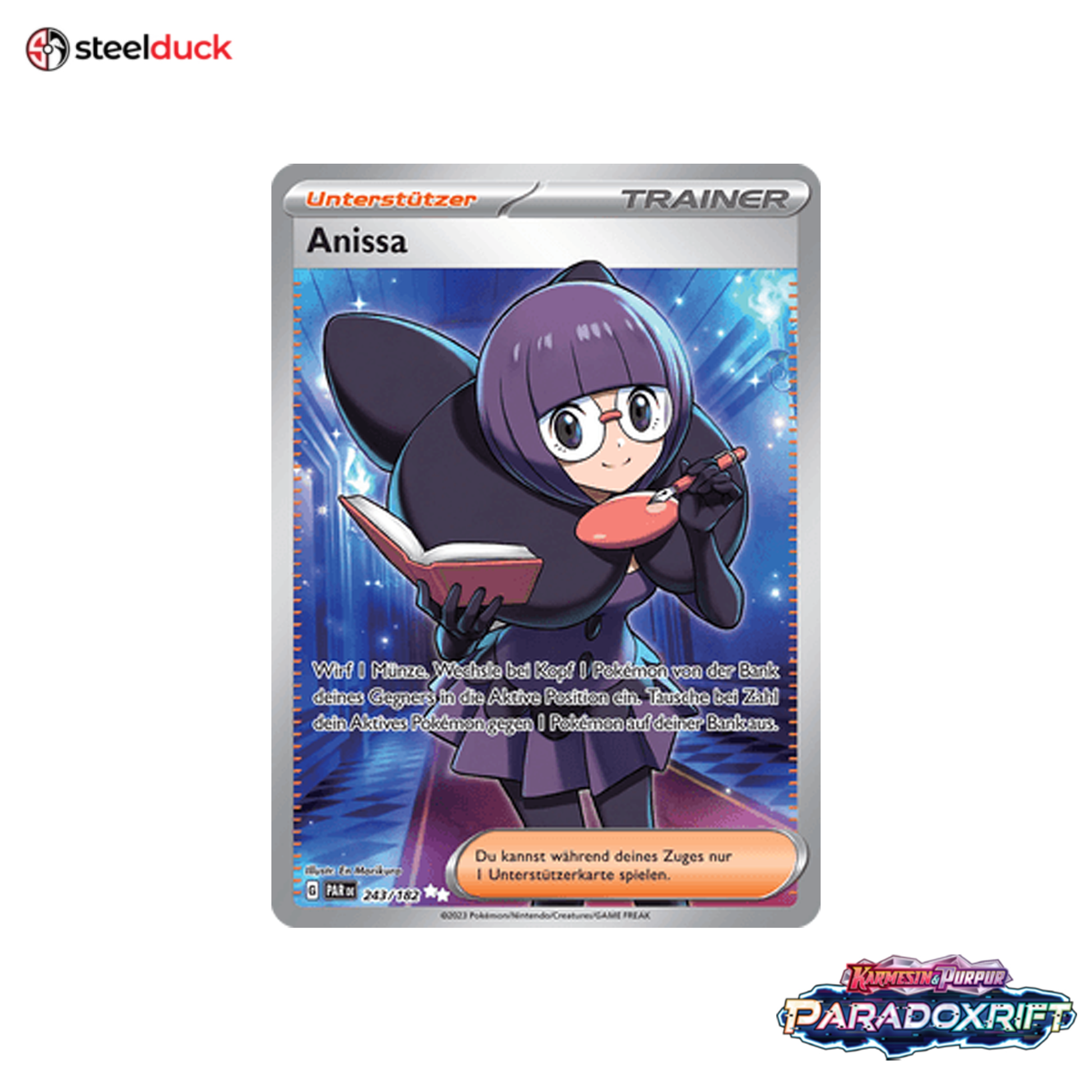 Die Karte Anissa stammt aus dem beliebten Pokémon-Set Paradoxrift und ist ein echtes Highlight für jede Sammlung.
