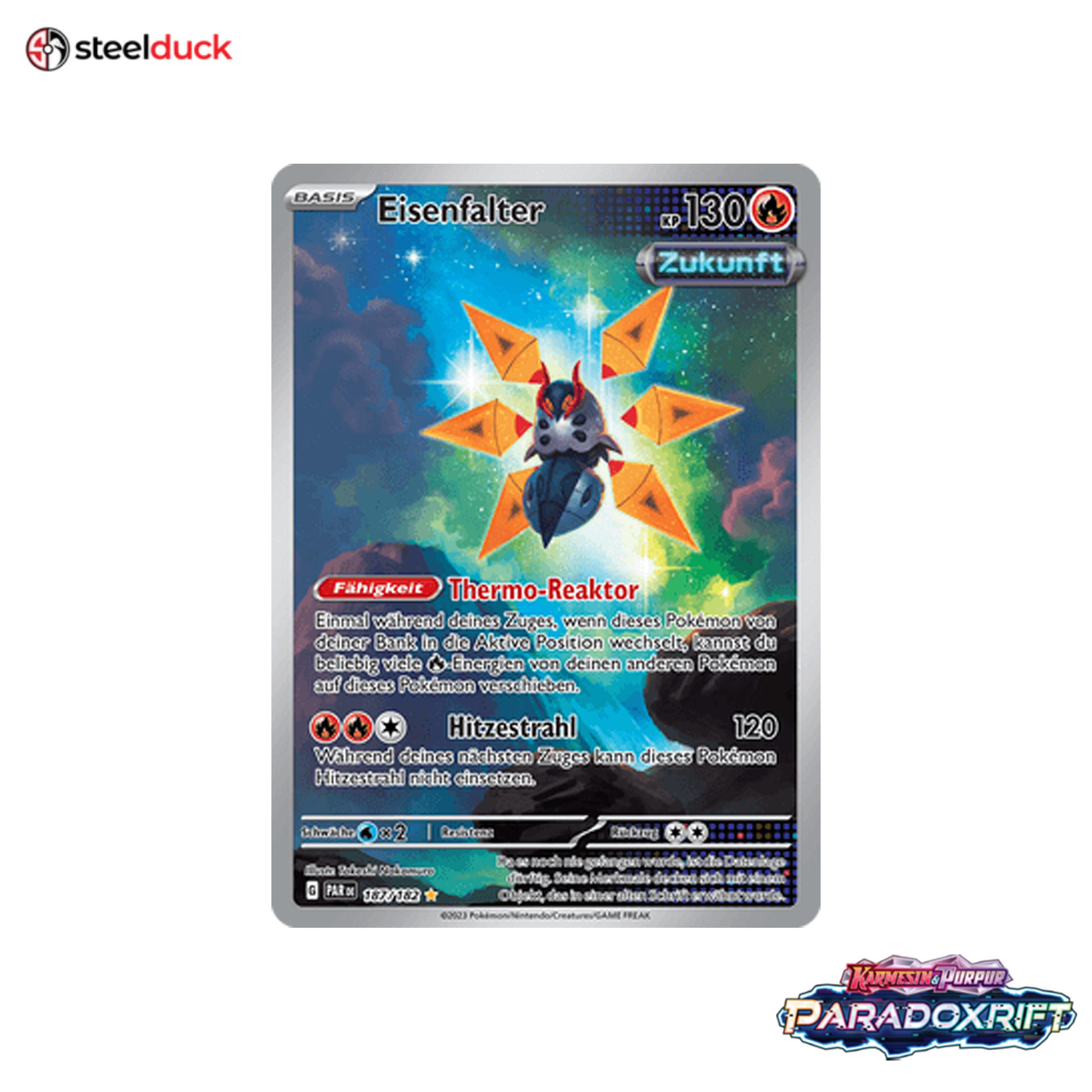 Die Karte Eisenfalter stammt aus dem beliebten Pokémon-Set Paradoxrift und ist ein echtes Highlight für jede Sammlung.