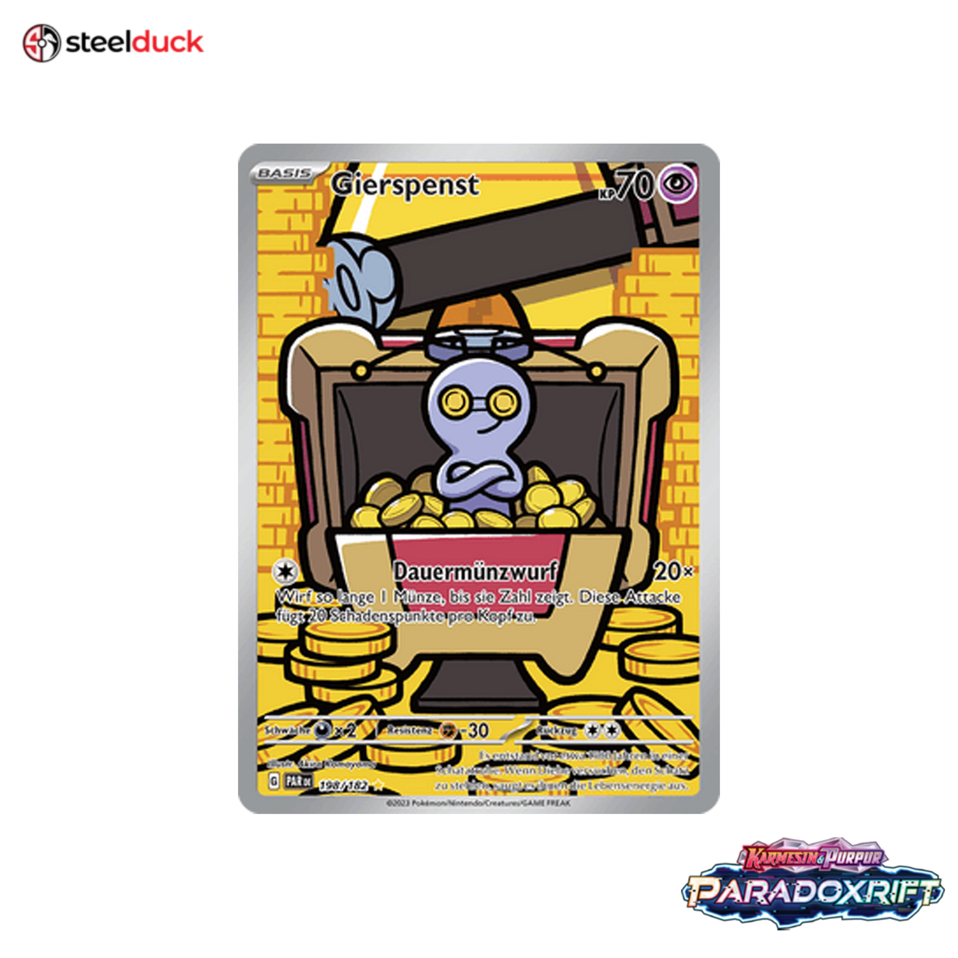 Die Karte Gierspenst stammt aus dem beliebten Pokémon-Set Paradoxrift und ist ein echtes Highlight für jede Sammlung.