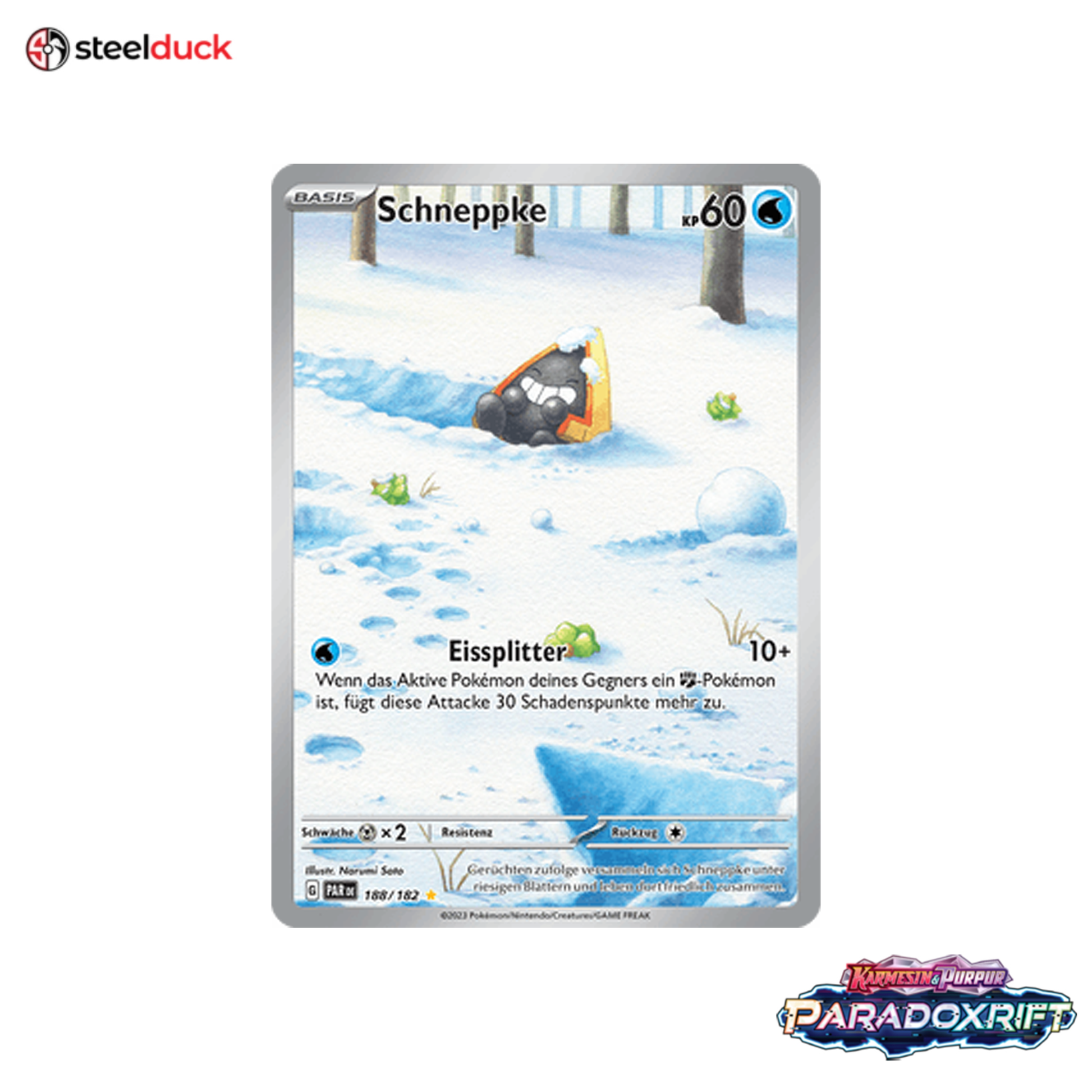 Die Karte Schneppke stammt aus dem beliebten Pokémon-Set Paradoxrift und ist ein echtes Highlight für jede Sammlung.