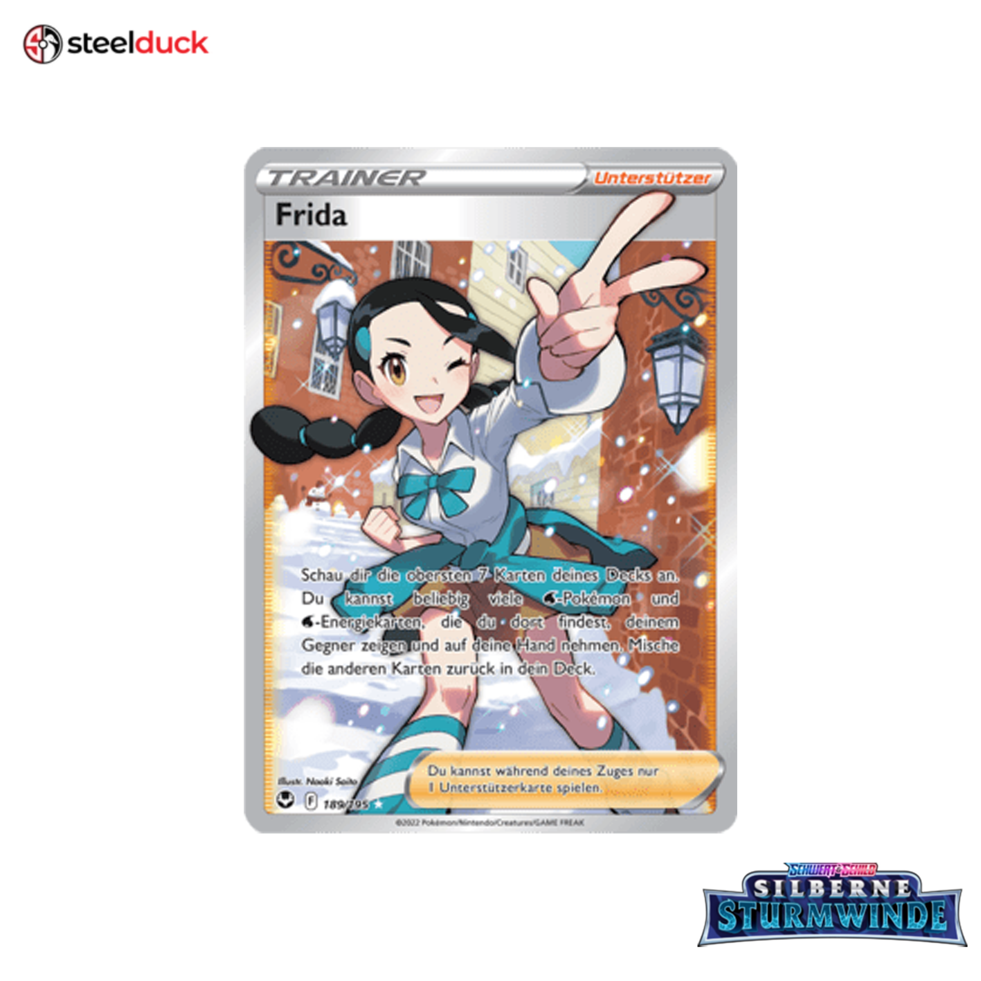 Die Karte Frida stammt aus dem beliebten Pokémon-Set Silberne Sturmwinde und ist ein echtes Highlight für jede Sammlung.