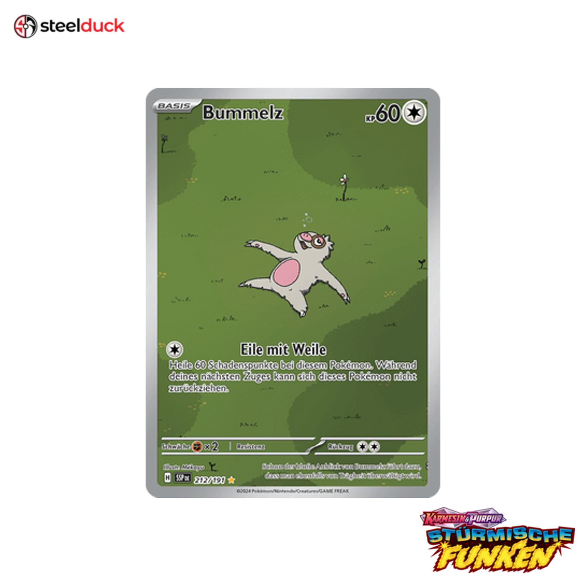 Die Karte Bummelz stammt aus dem beliebten Pokémon-Set Stürmische Funken und ist ein echtes Highlight für jede Sammlung.