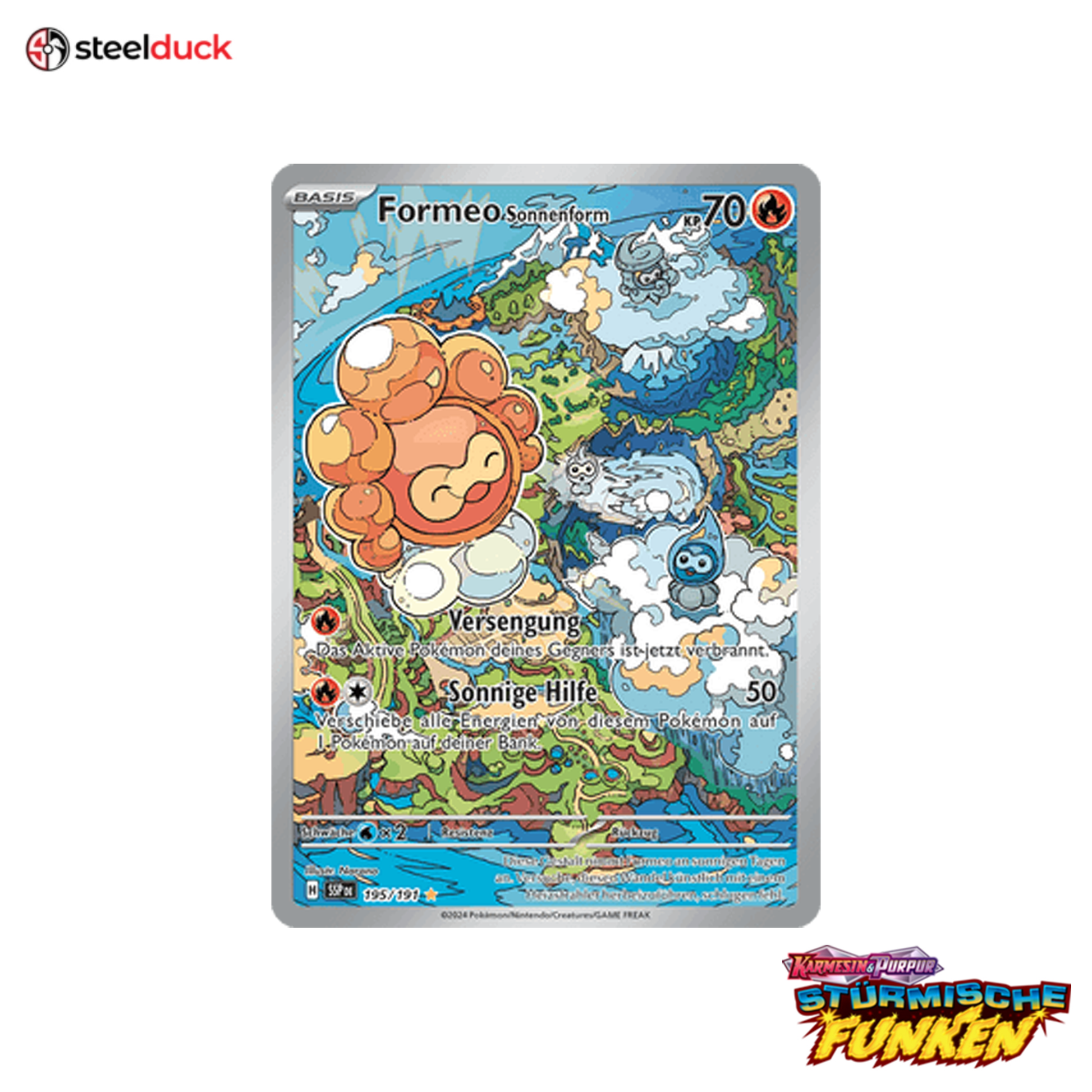 Die Karte Formeo Sonnenform stammt aus dem beliebten Pokémon-Set Stürmische Funken und ist ein echtes Highlight für jede Sammlung.