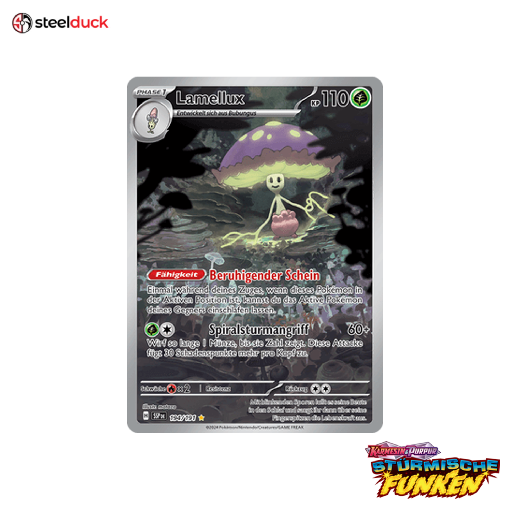 Die Karte Lamellux stammt aus dem beliebten Pokémon-Set Stürmische Funken und ist ein echtes Highlight für jede Sammlung.