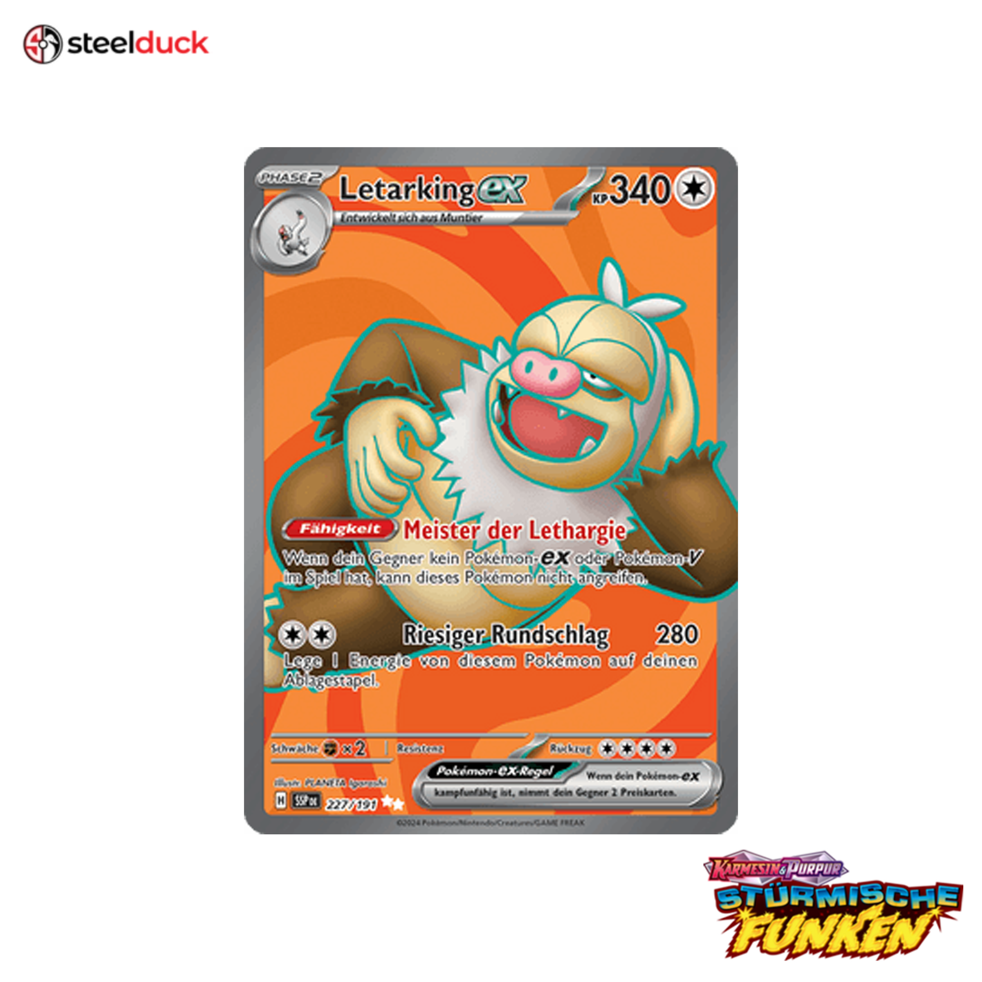 Die Karte Letarking ex stammt aus dem beliebten Pokémon-Set Stürmische Funken und ist ein echtes Highlight für jede Sammlung.