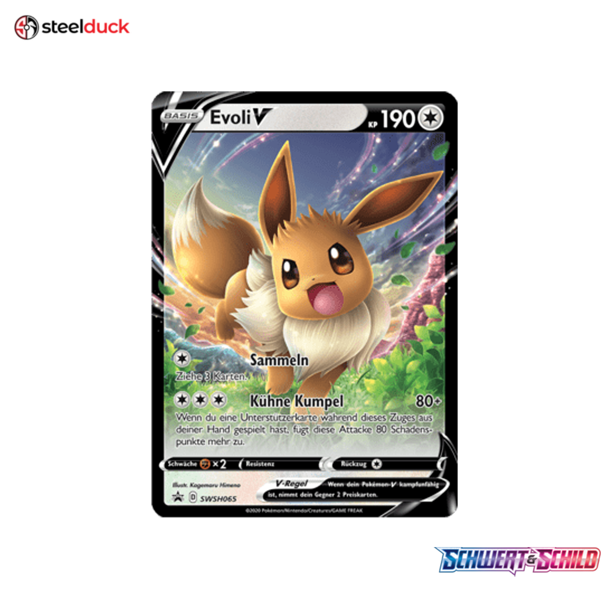 Die Karte Evoli V stammt aus dem beliebten Pokémon-Set SWSH Black Star Promos und ist ein echtes Highlight für jede Sammlung.