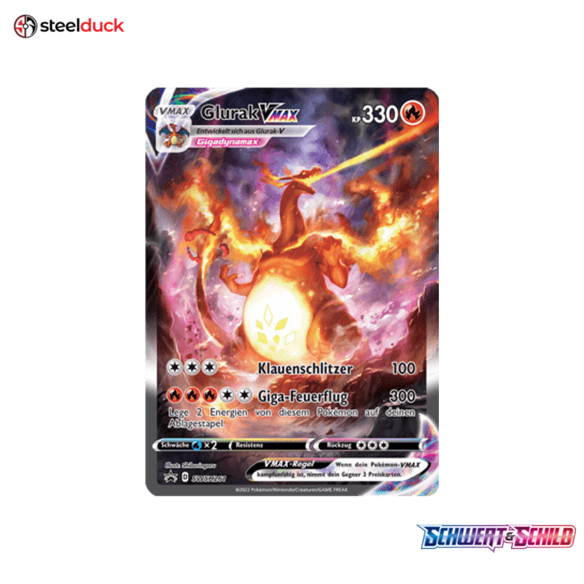 Die Karte Glurak VMAX stammt aus dem beliebten Pokémon-Set SWSH Black Star Promos und ist ein echtes Highlight für jede Sammlung.