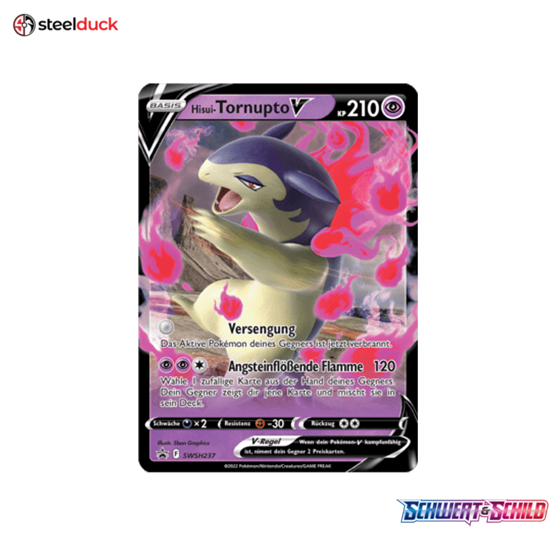Die Karte Hisui-Tornupto V stammt aus dem beliebten Pokémon-Set SWSH Black Star Promos und ist ein echtes Highlight für jede Sammlung.