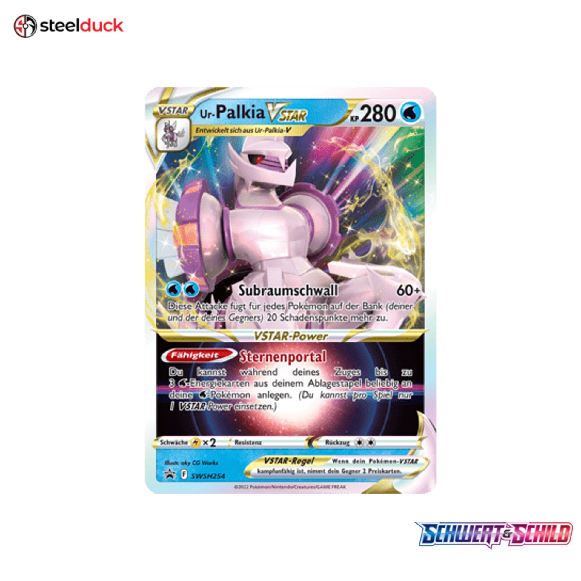 Die Karte Ur-Palkia VSTAR stammt aus dem beliebten Pokémon-Set SWSH Black Star Promos und ist ein echtes Highlight für jede Sammlung.