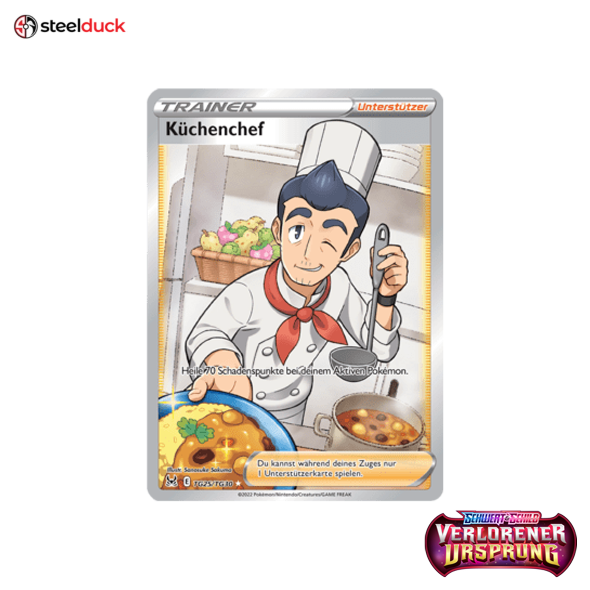 Die Karte Küchenchef stammt aus dem beliebten Pokémon-Set Verlorener Ursprung und ist ein echtes Highlight für jede Sammlung.