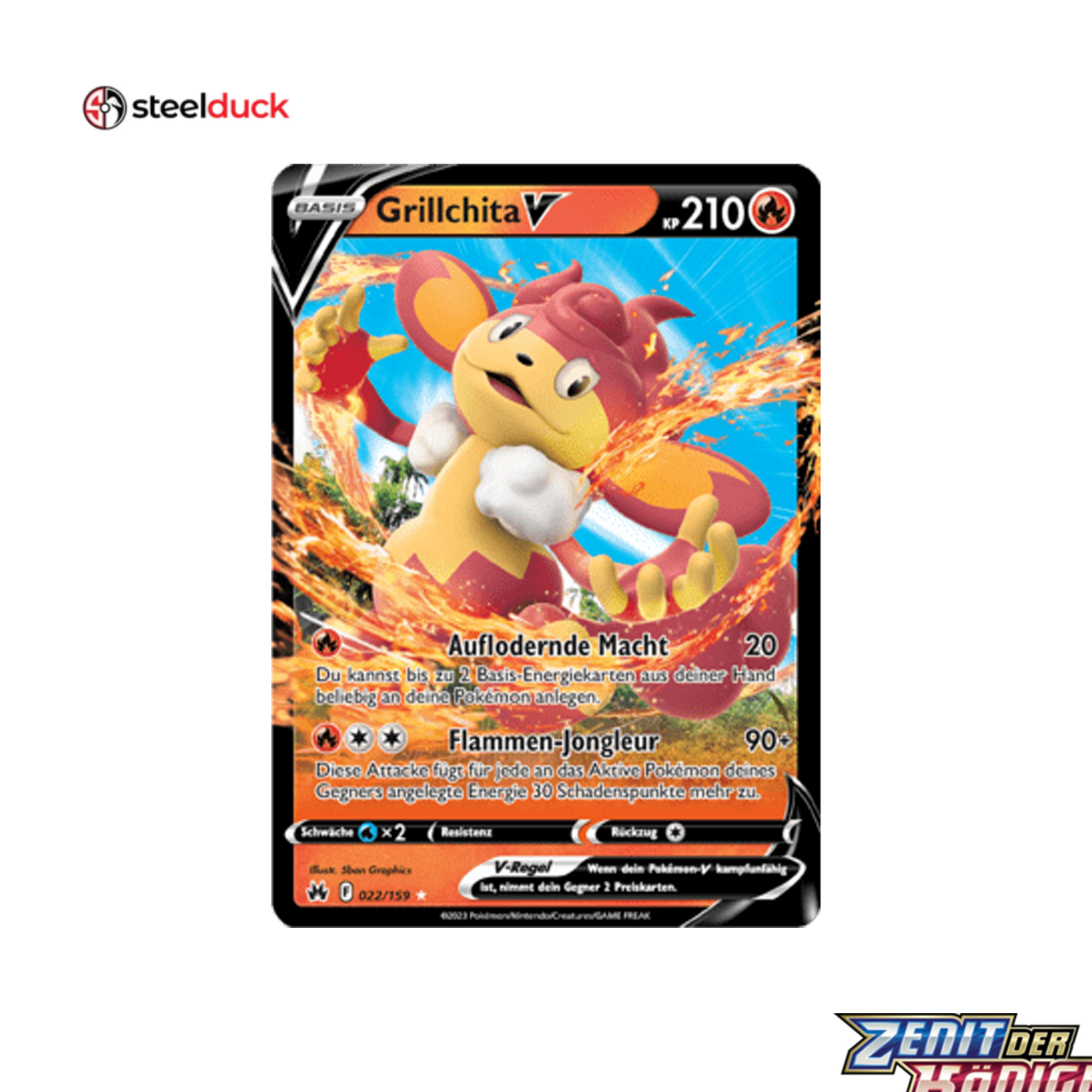 Die Karte Grillchita V stammt aus dem beliebten Pokémon-Set Zenit der Könige und ist ein echtes Highlight für jede Sammlung.