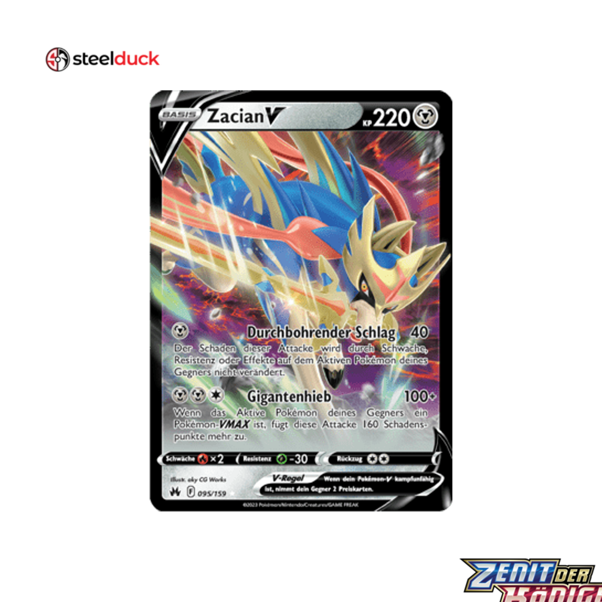 Die Karte Zacian V stammt aus dem beliebten Pokémon-Set Zenit der Könige und ist ein echtes Highlight für jede Sammlung.
